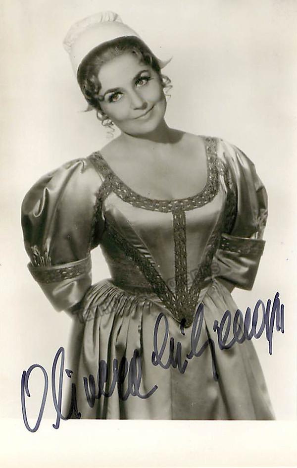Nice black-and-white photograph signed by her, shown as Zerbinetta in Strauss' opera Ariadne auf Naxos. Size is 3.5 x 5.5 inches, in excellent condition.
