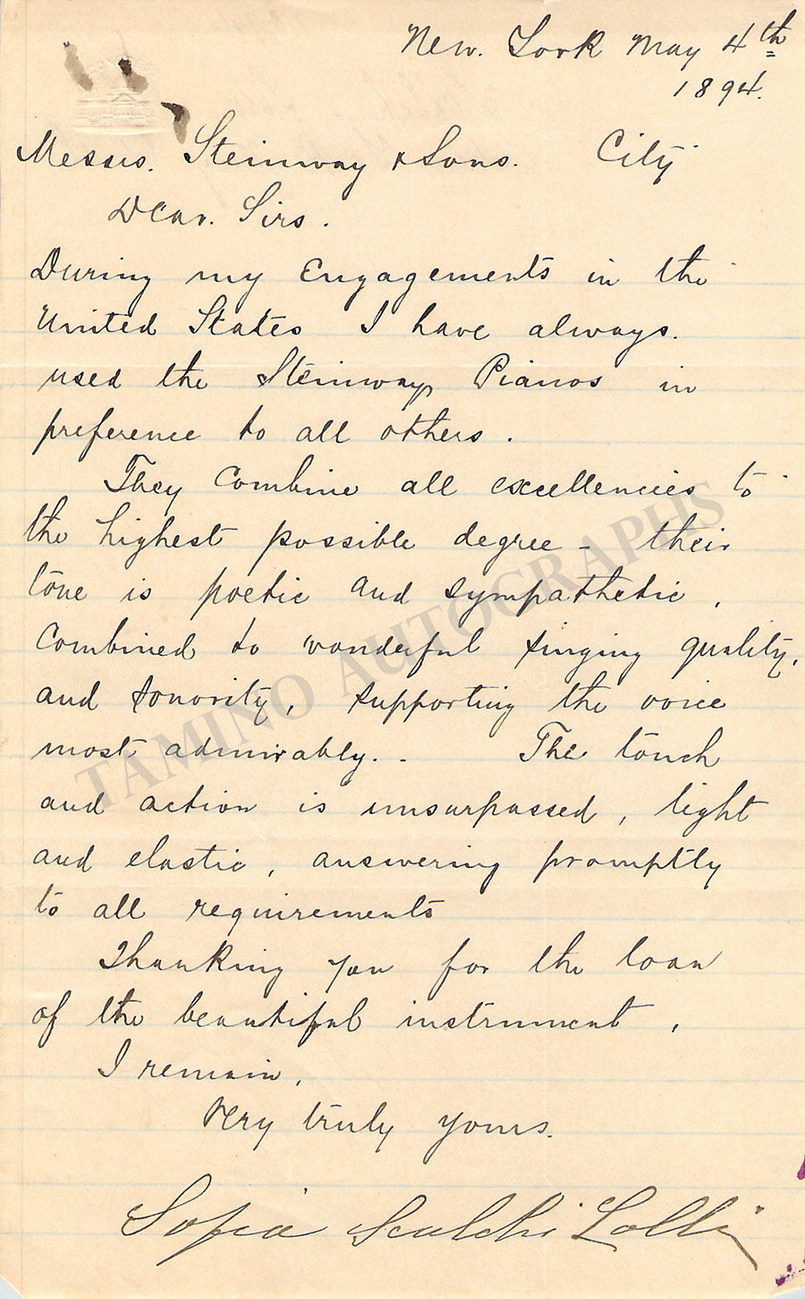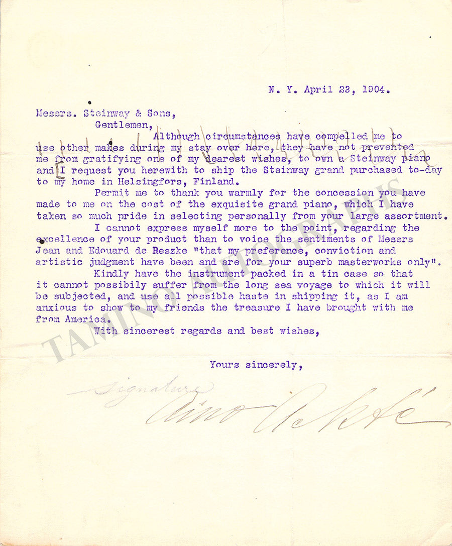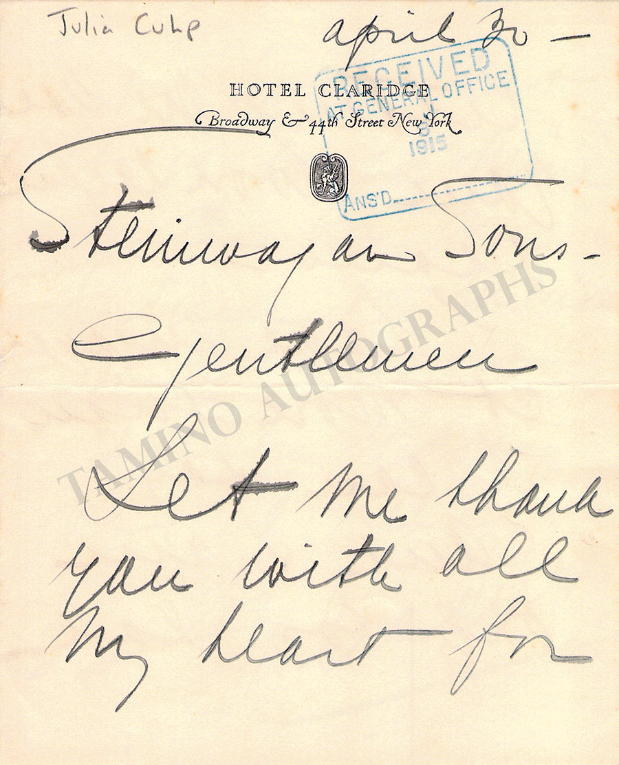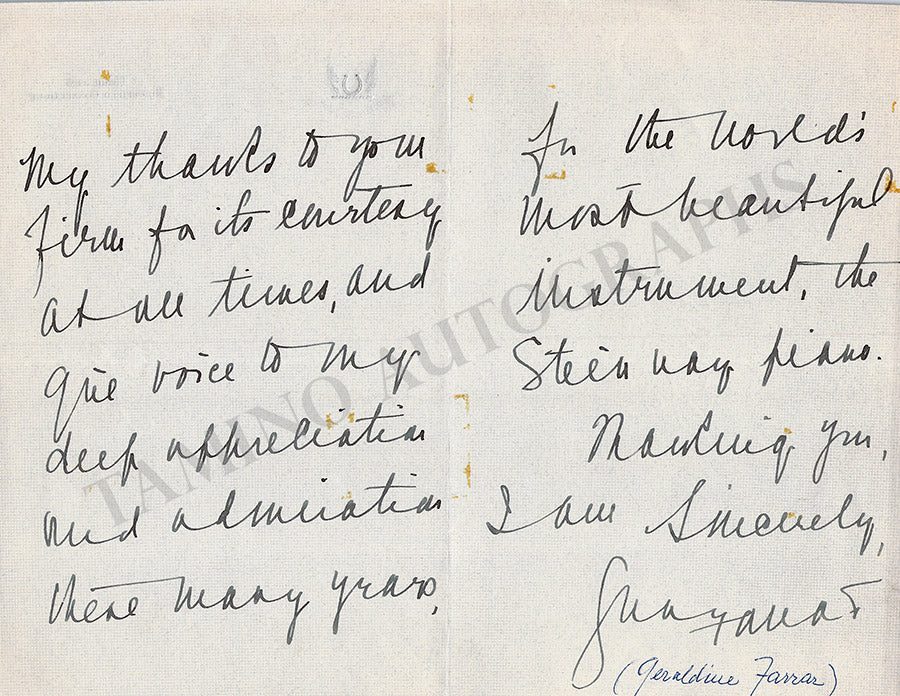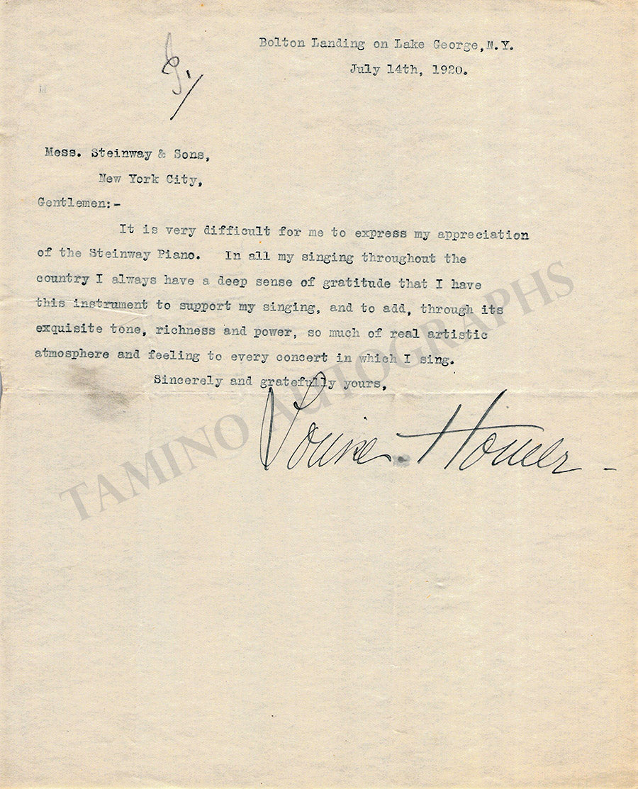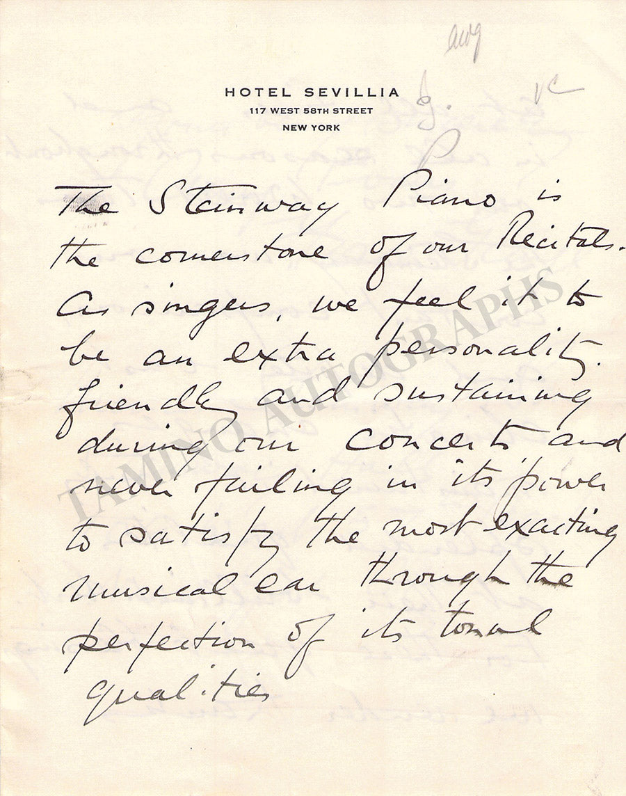 Opera Singers Autograph Letters to Steinway & Sons Pianos