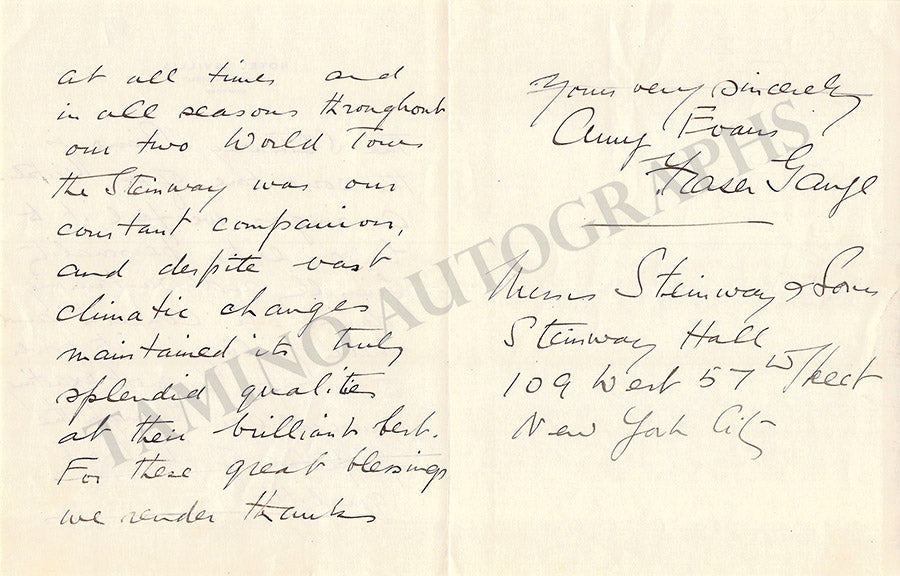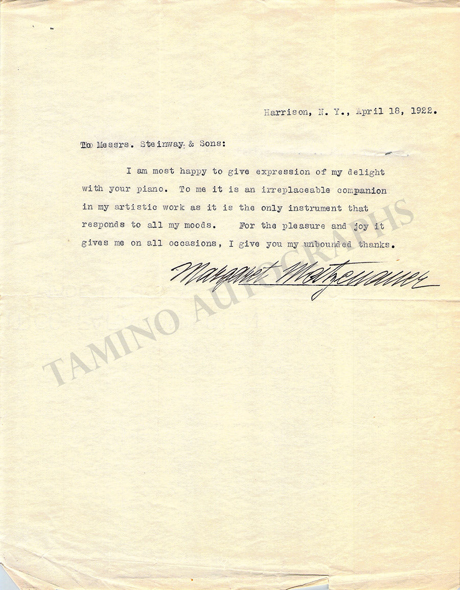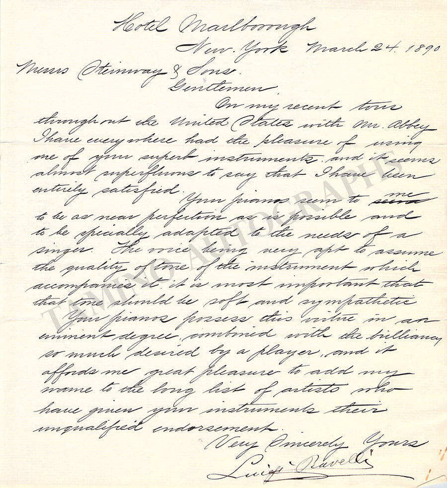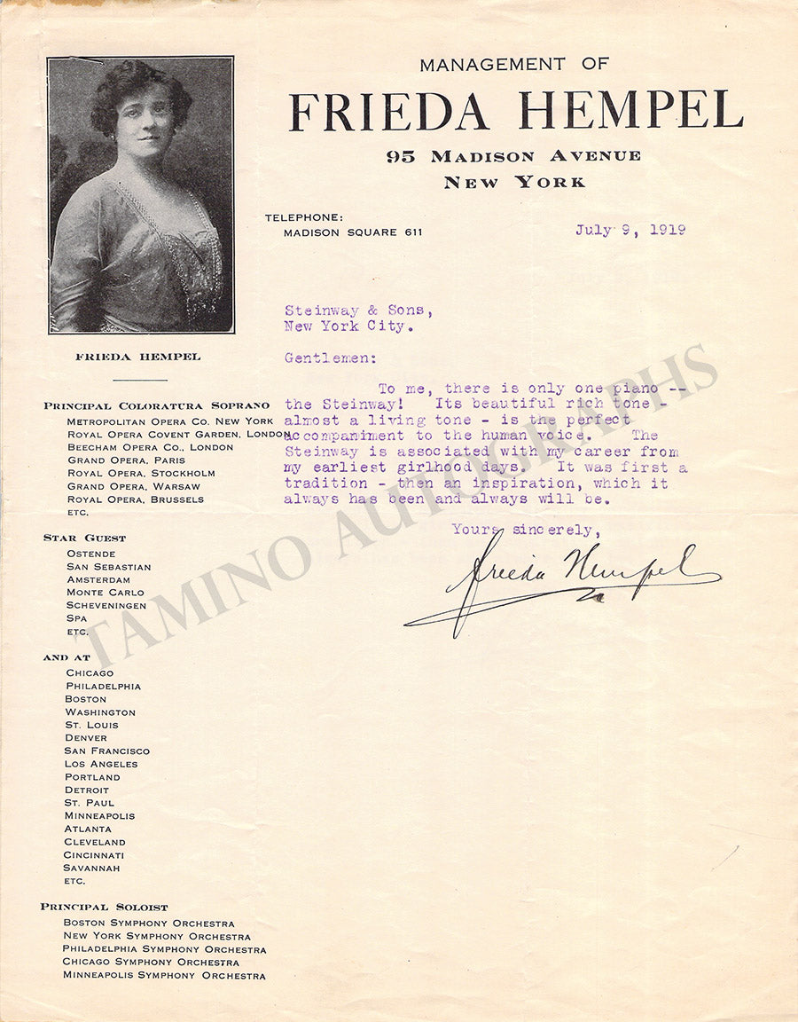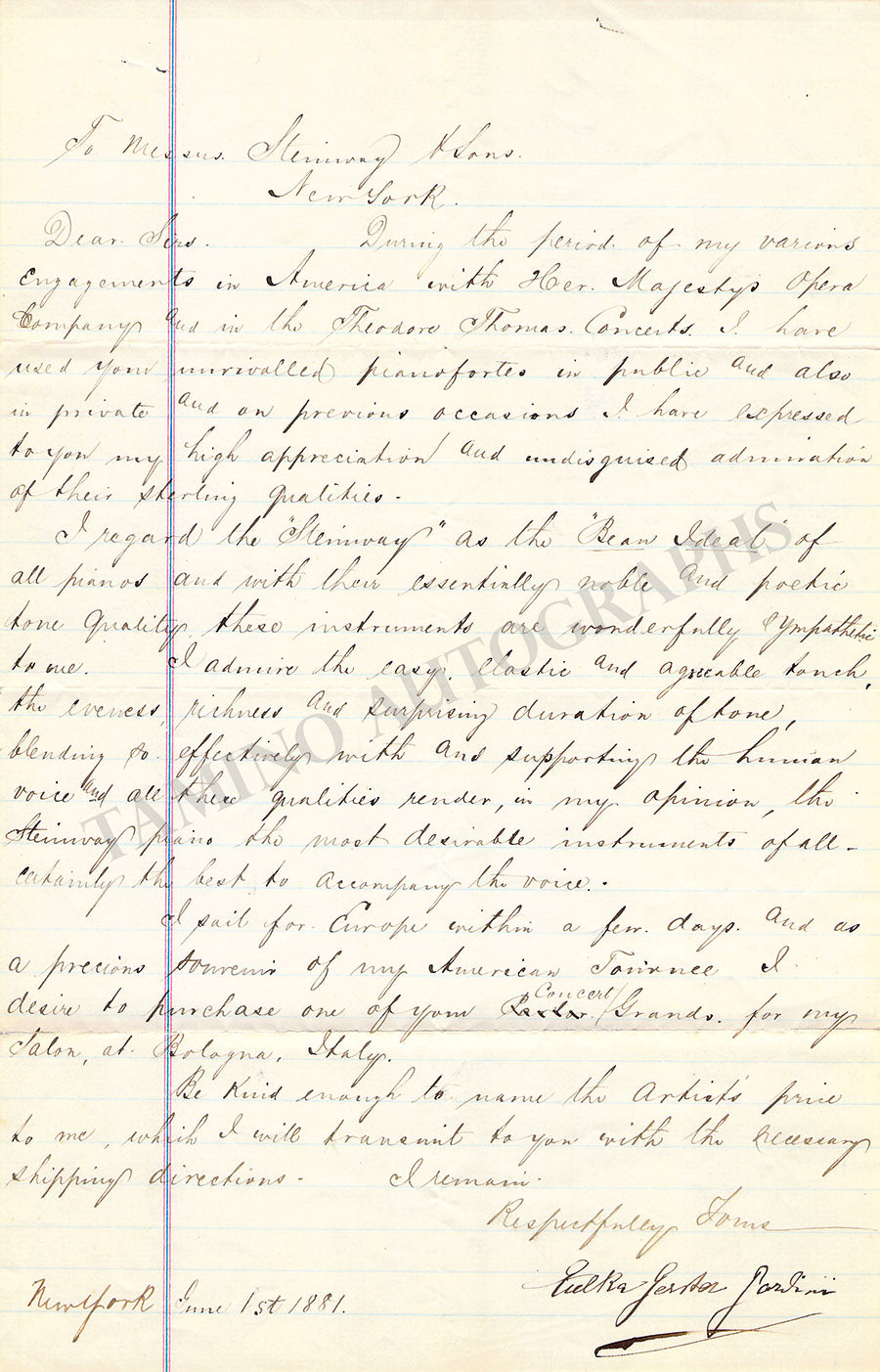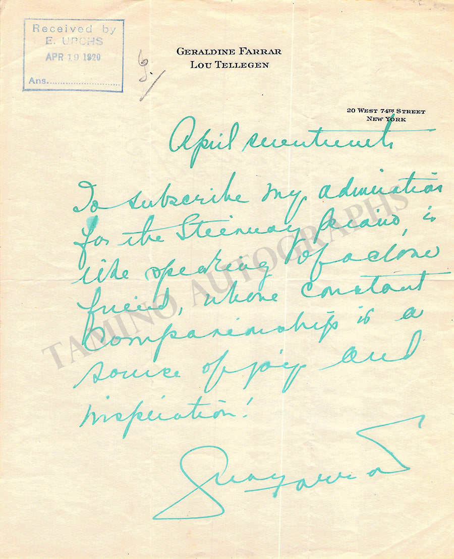 Opera Singers Autograph Letters to Steinway & Sons Pianos
