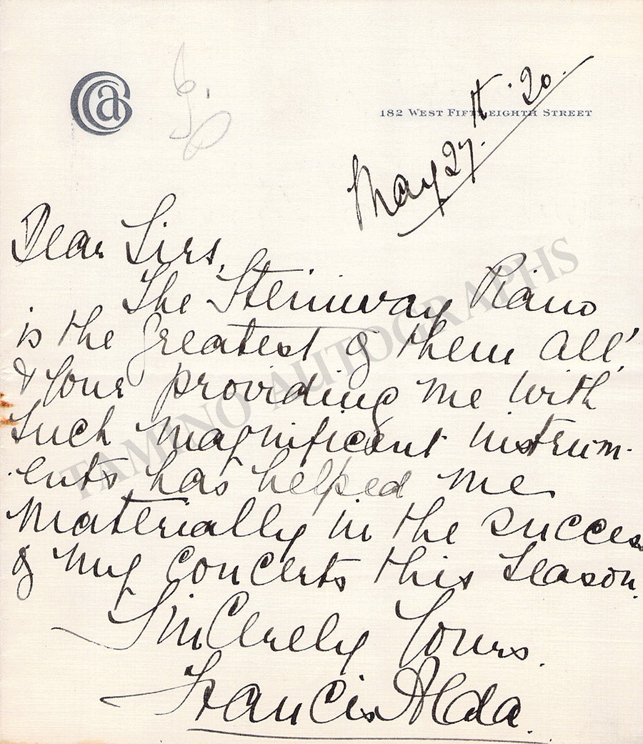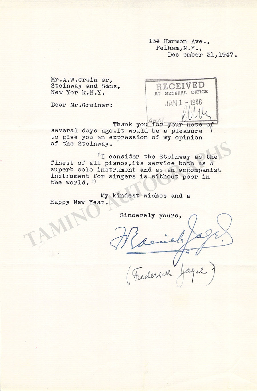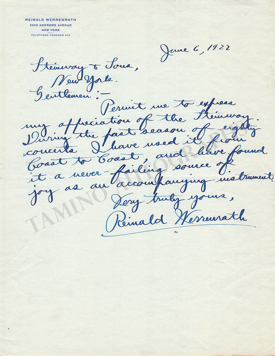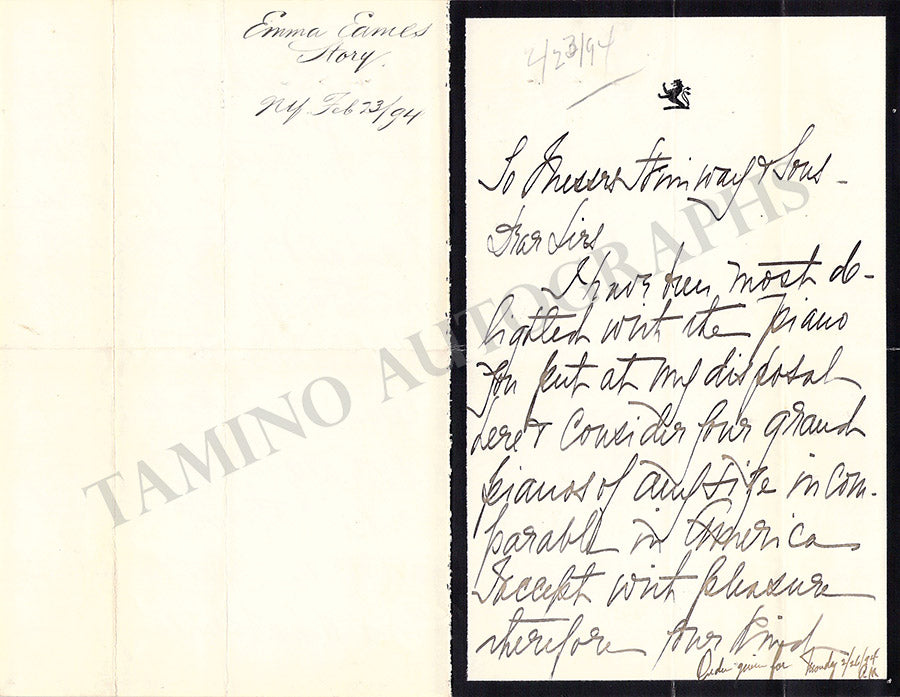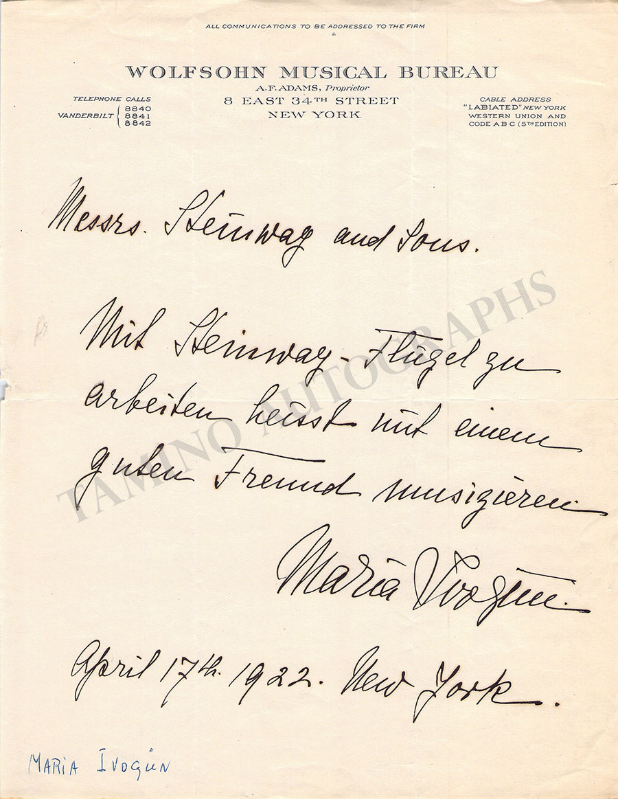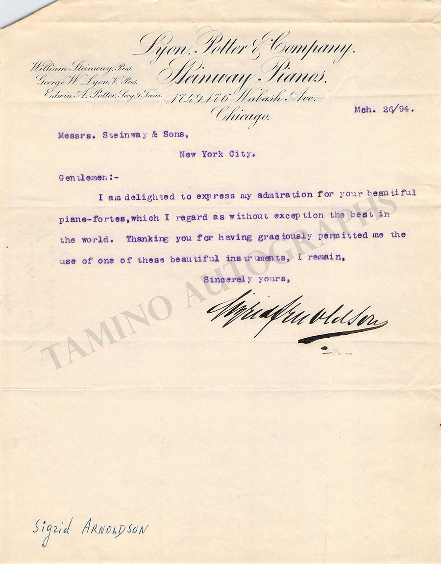 Opera Singers Autograph Letters to Steinway & Sons Pianos