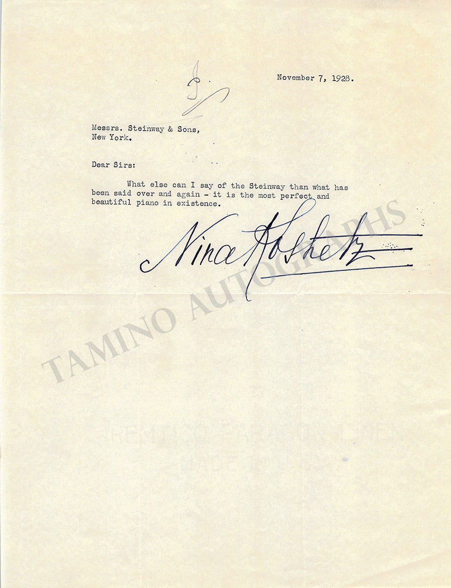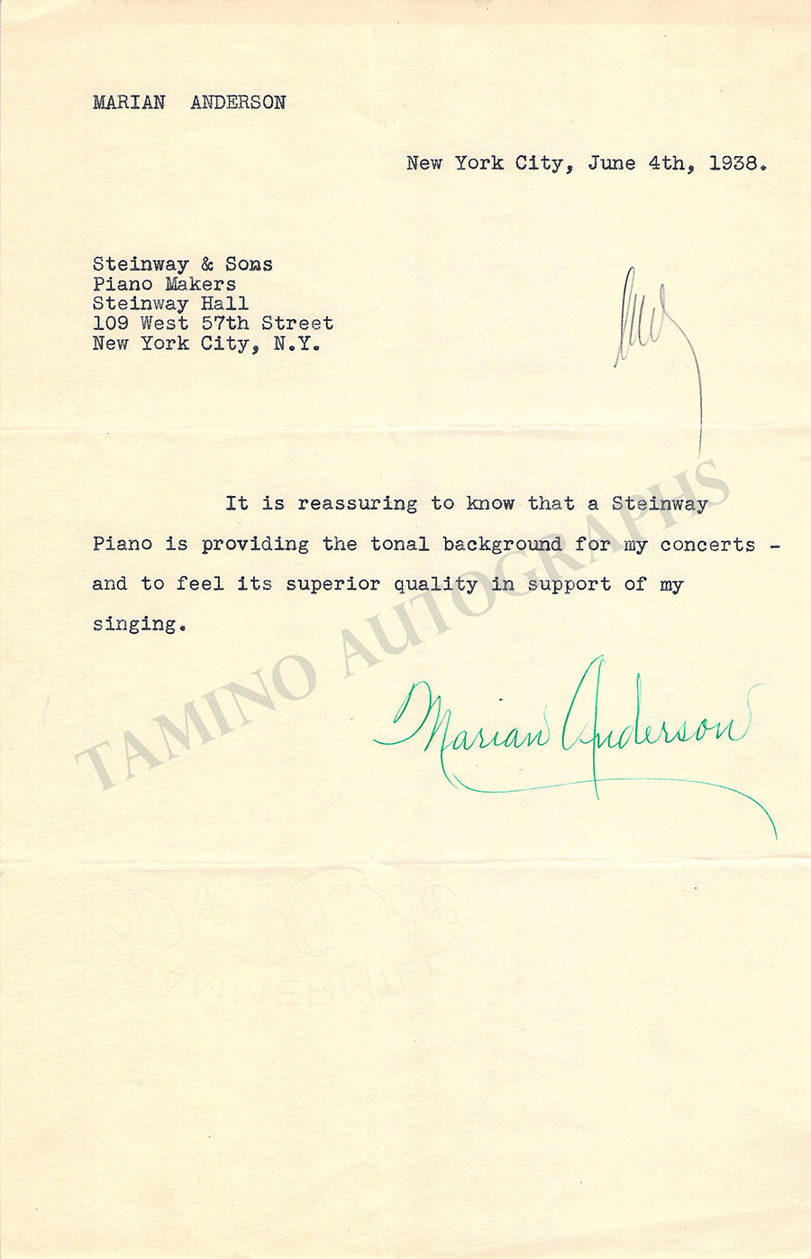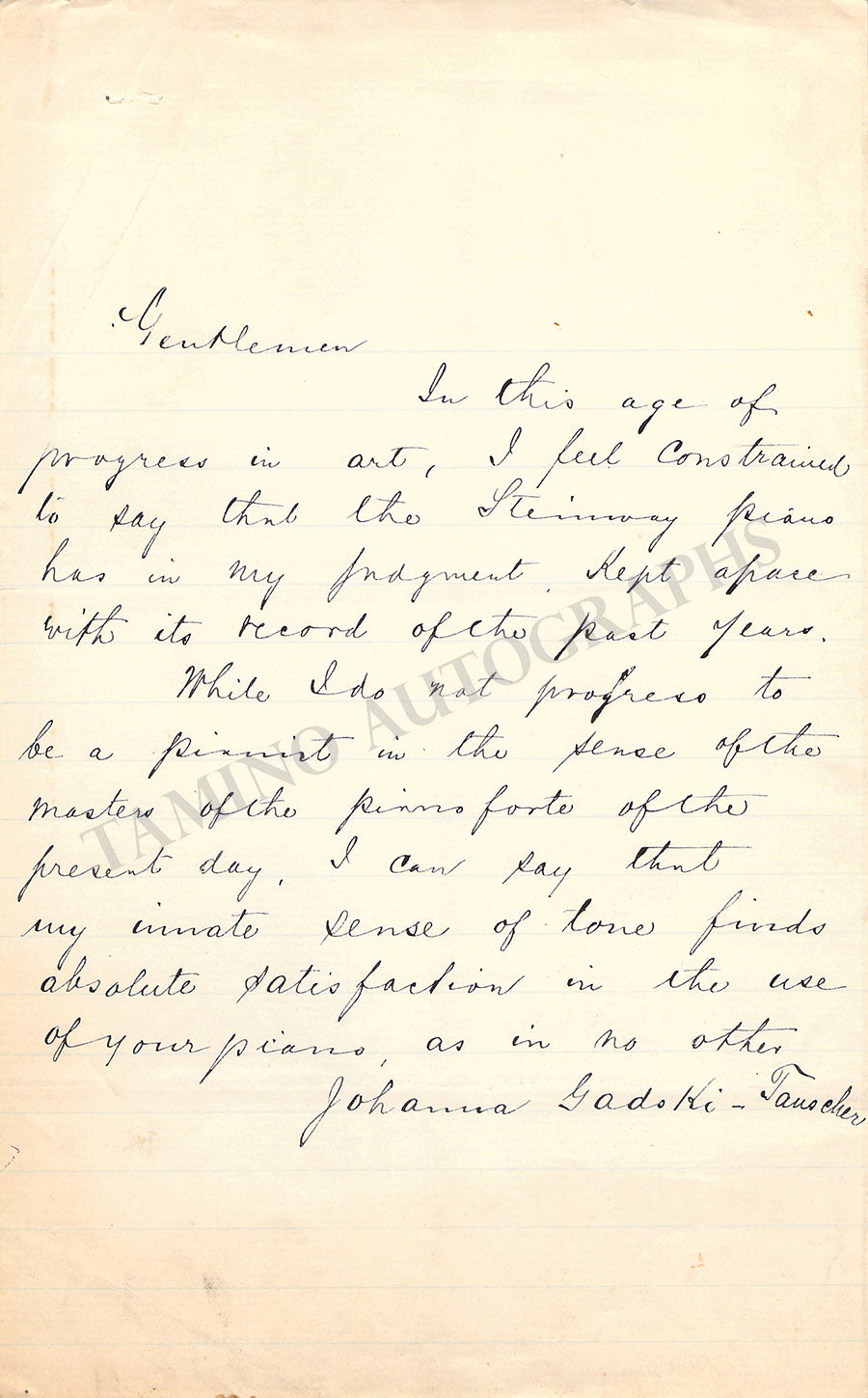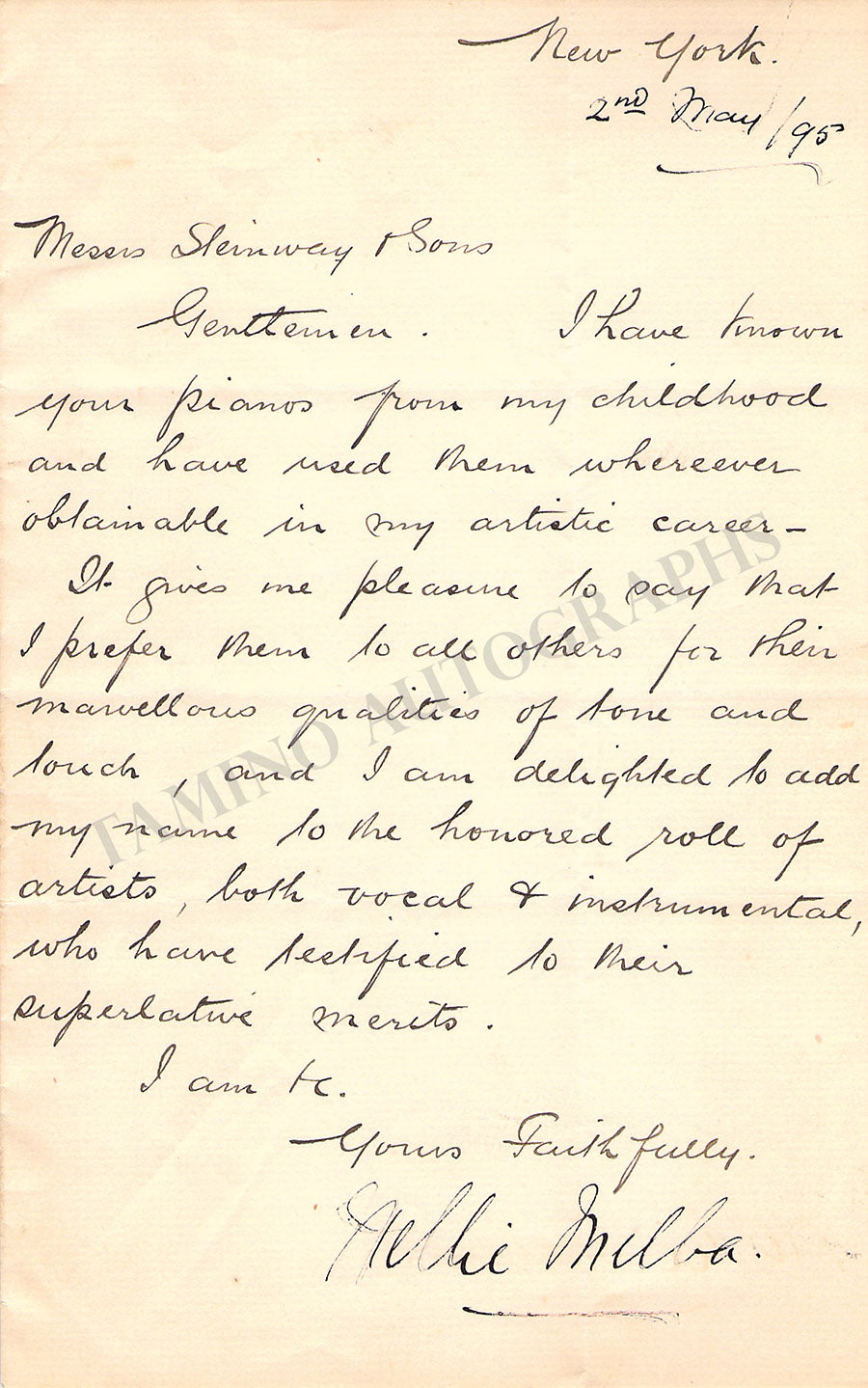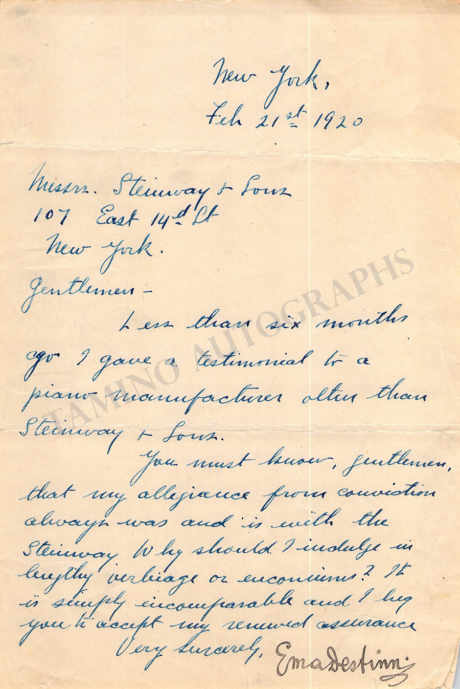 Opera Singers Autograph Letters to Steinway & Sons Pianos