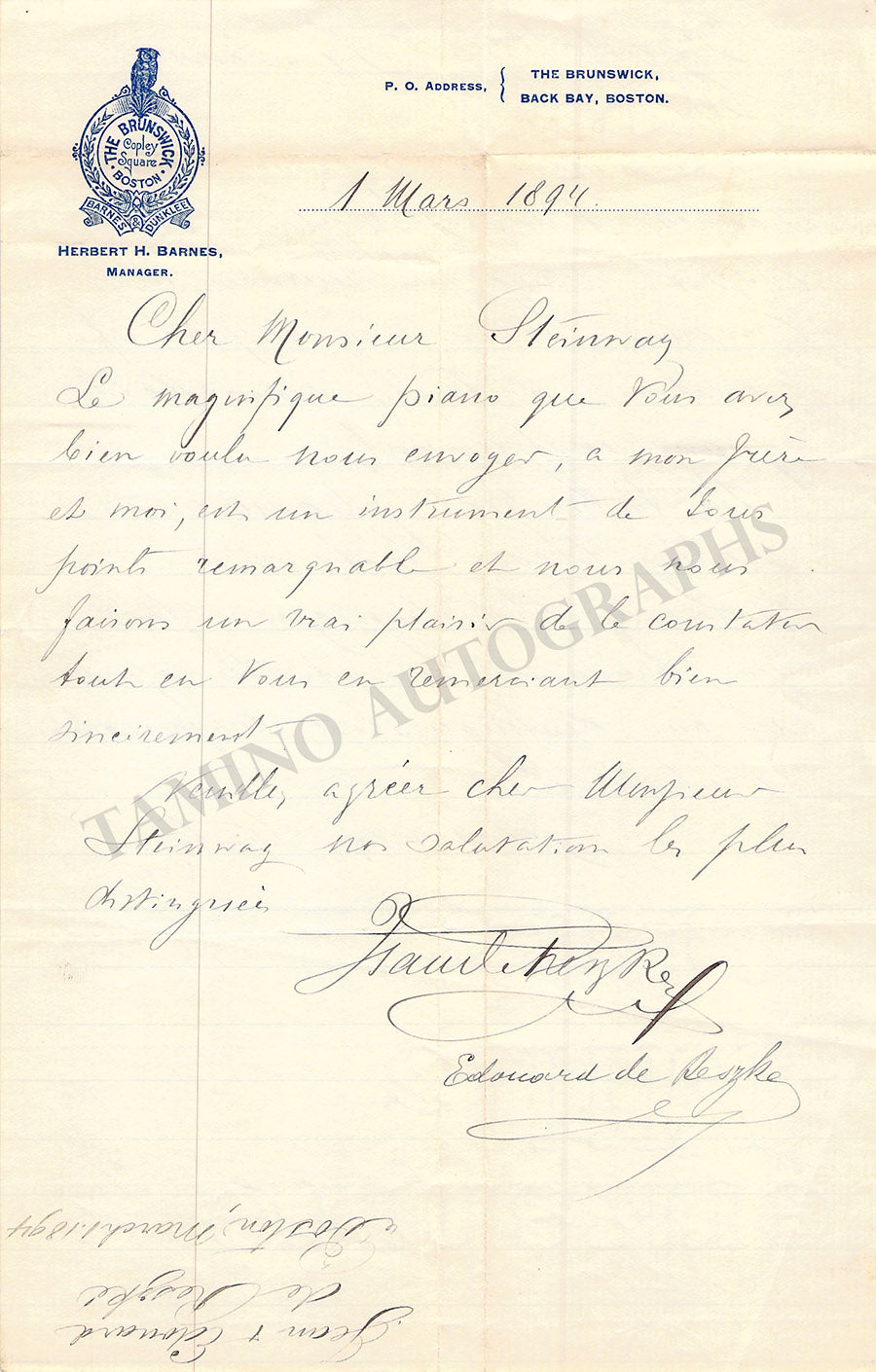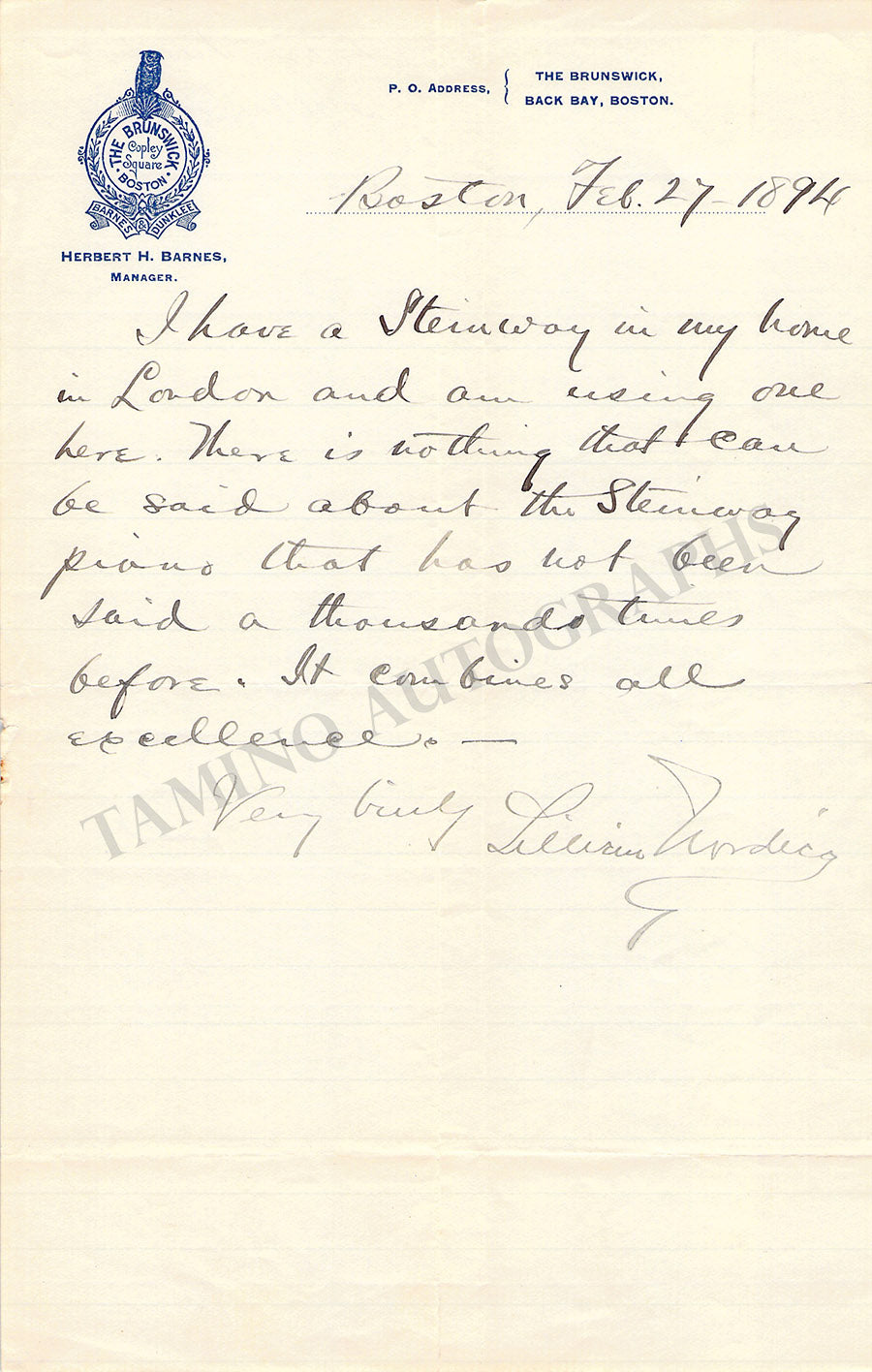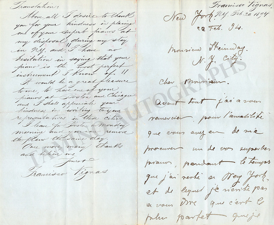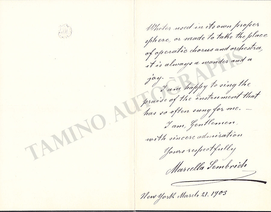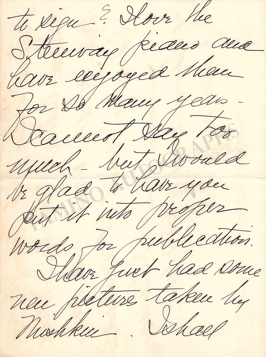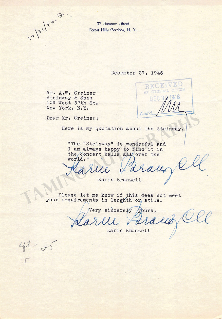 Opera Singers Autograph Letters to Steinway & Sons Pianos