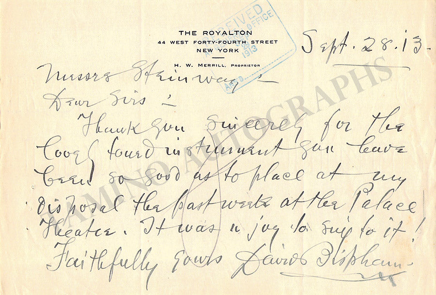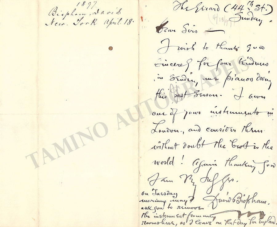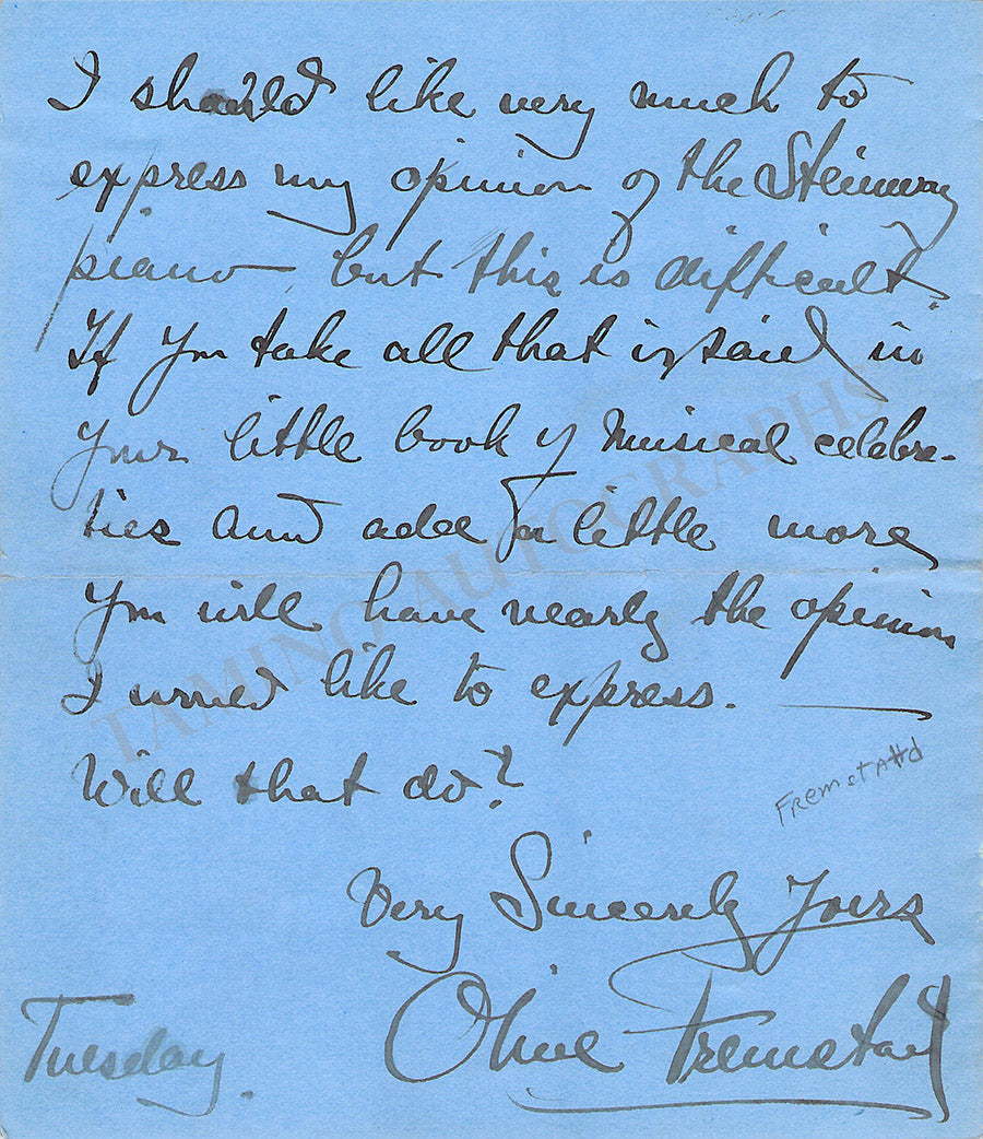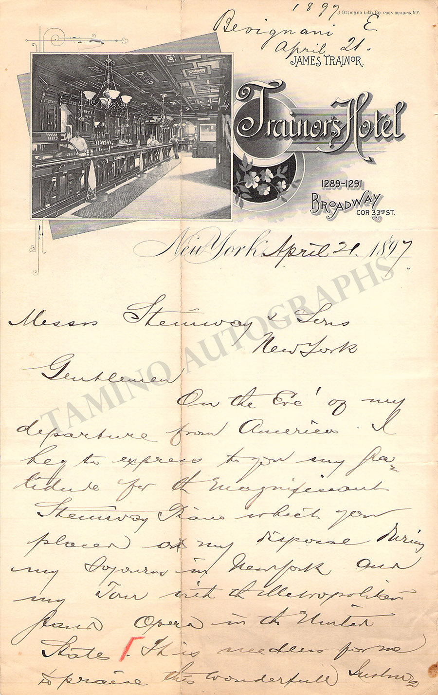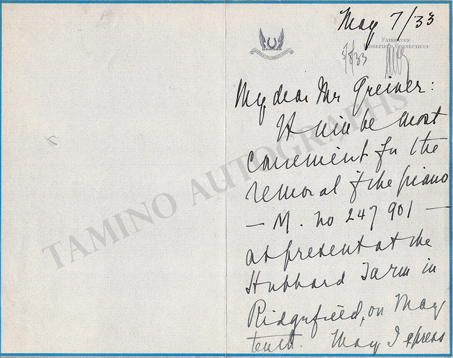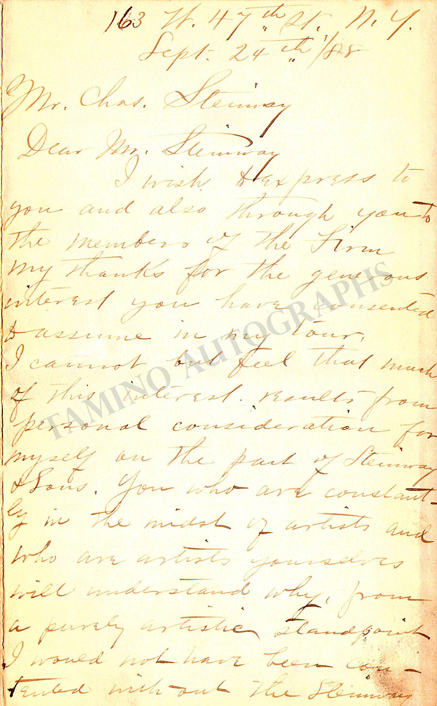 Opera Singers Autograph Letters to Steinway & Sons Pianos