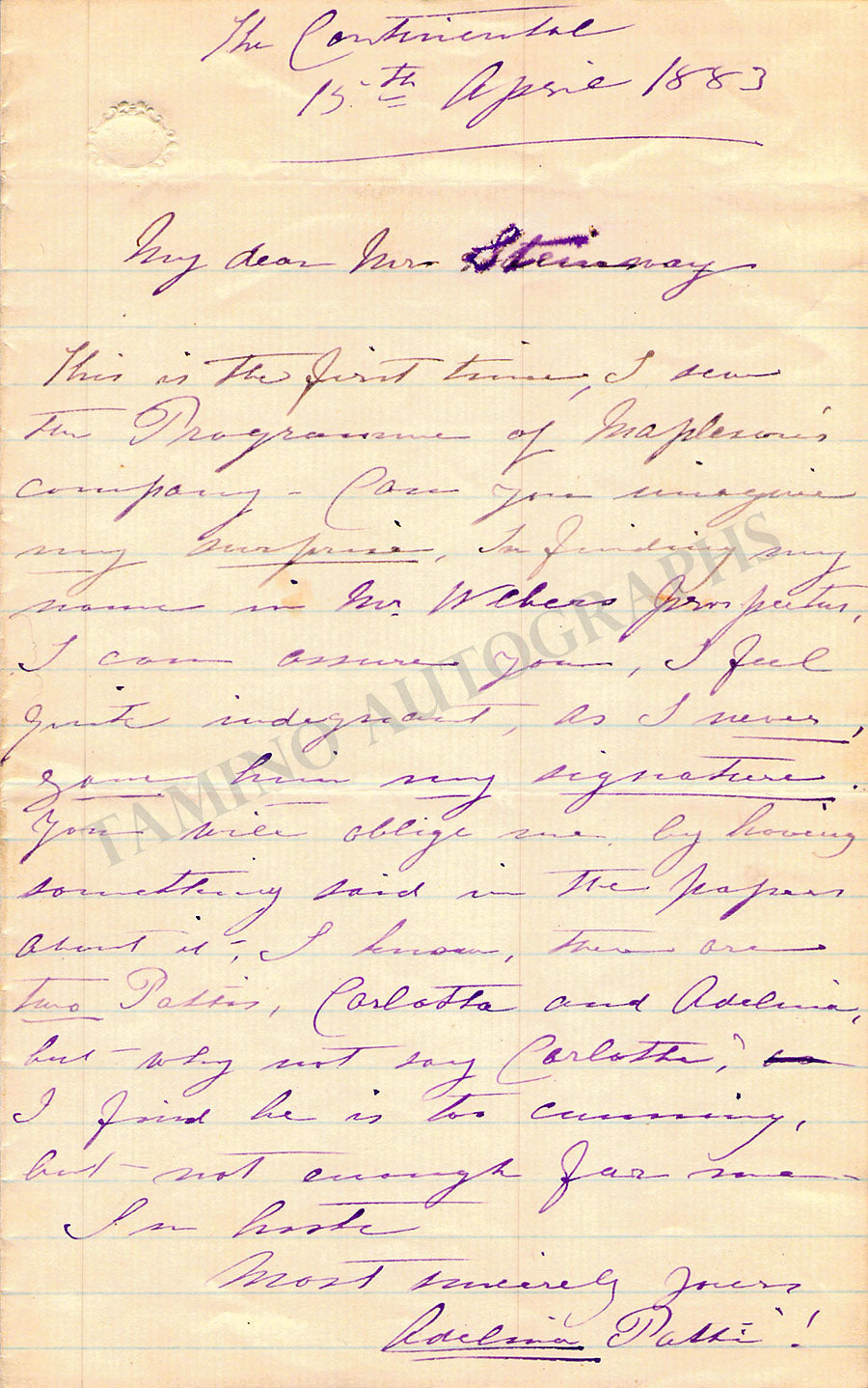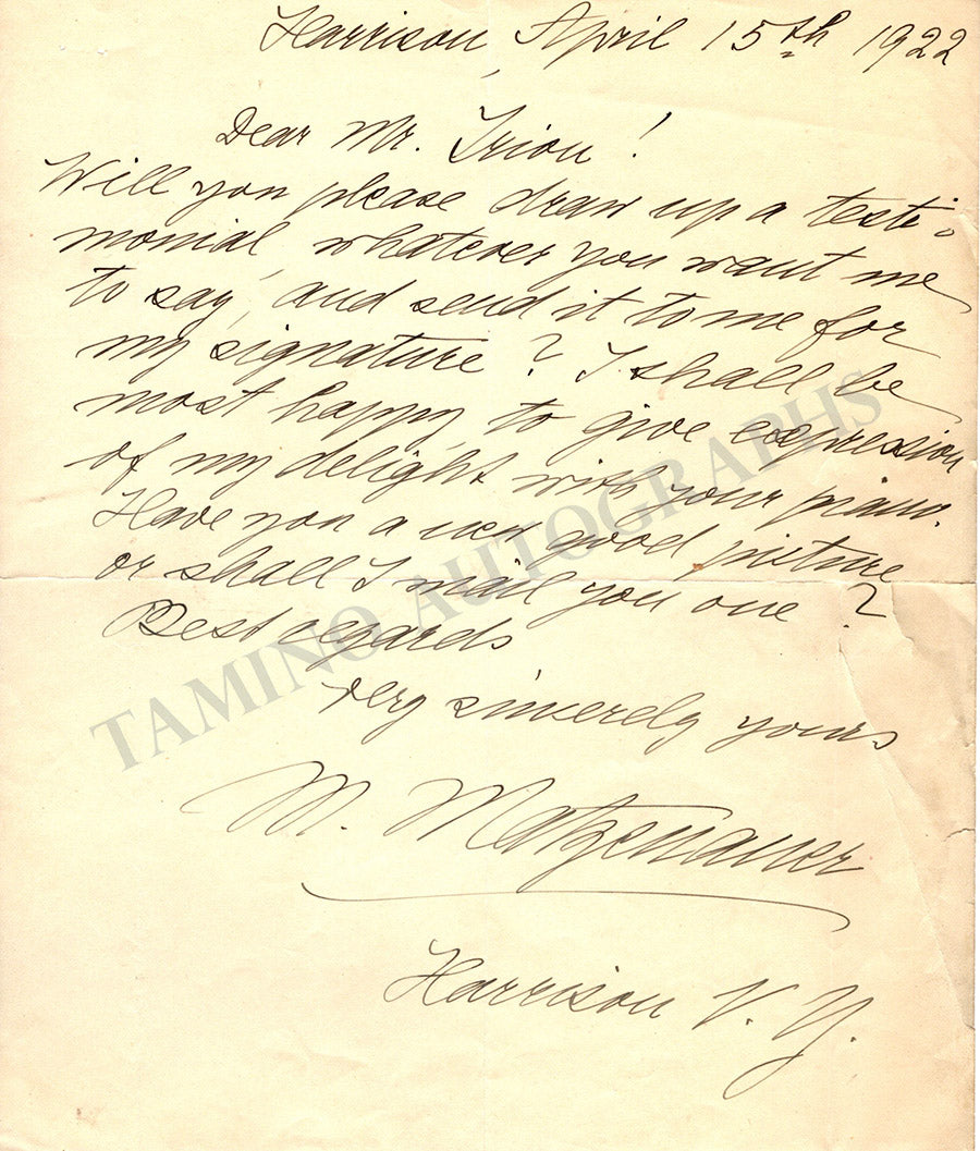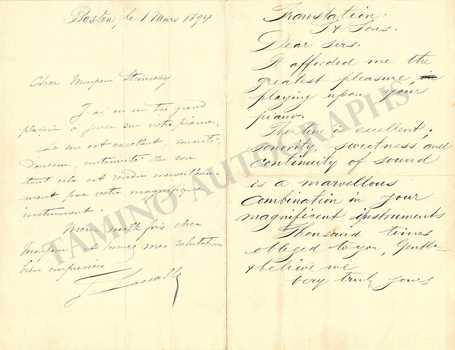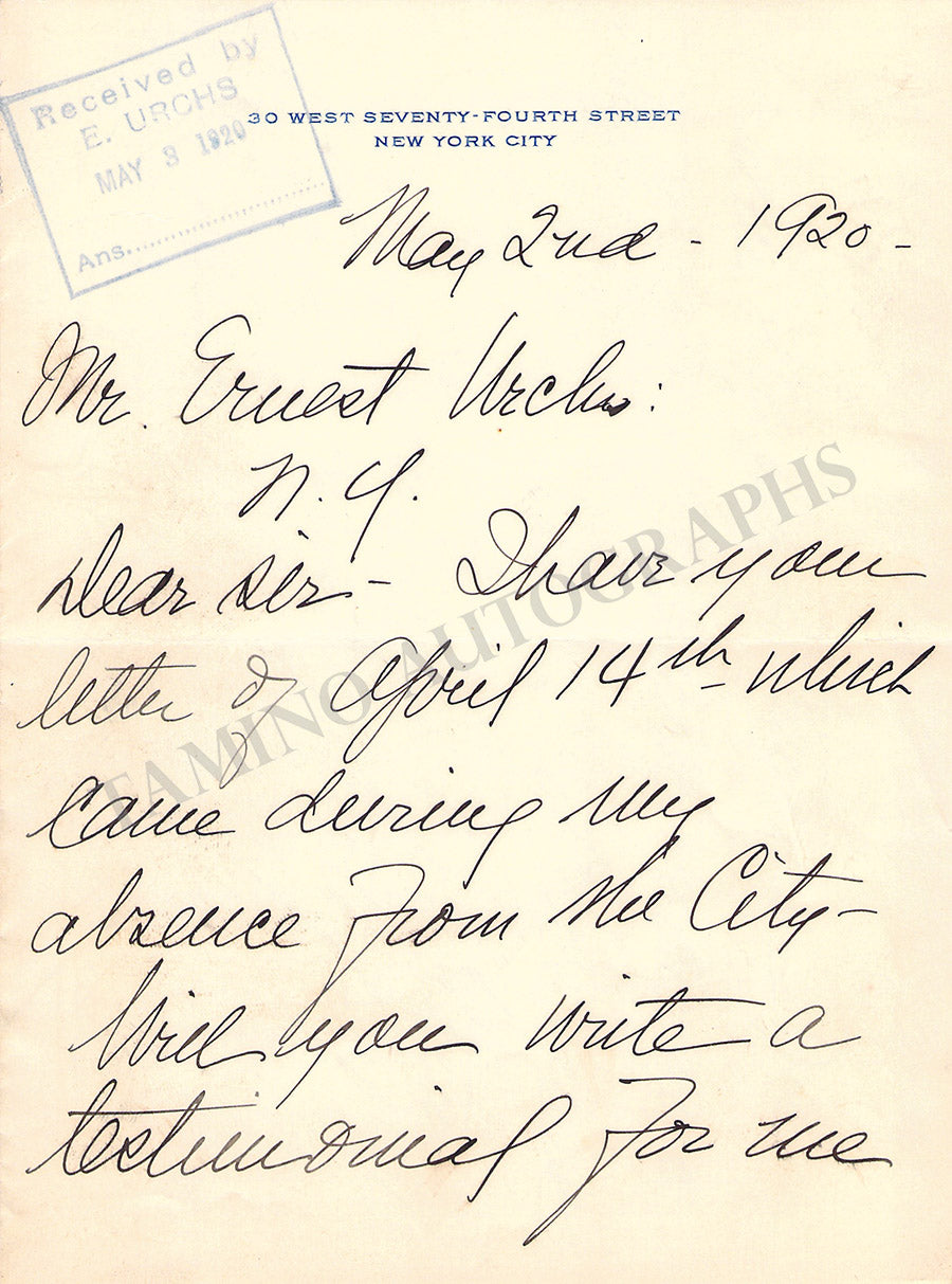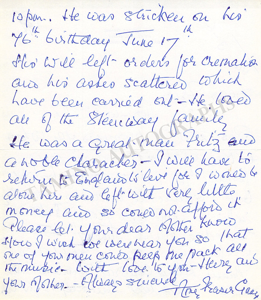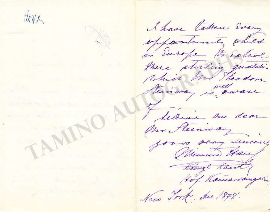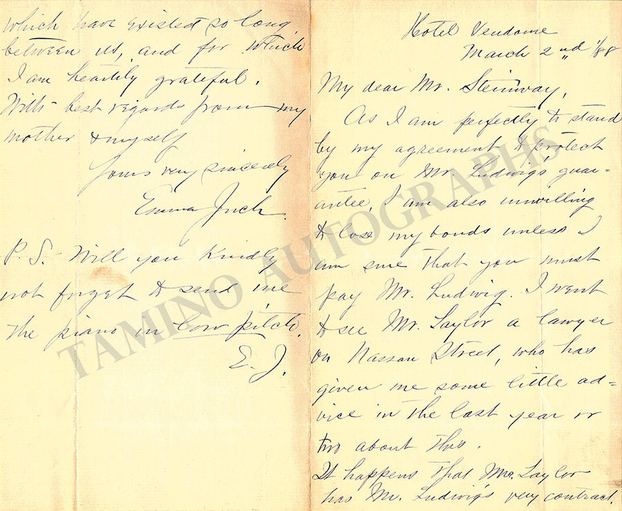 Opera Singers Autograph Letters to Steinway & Sons Pianos