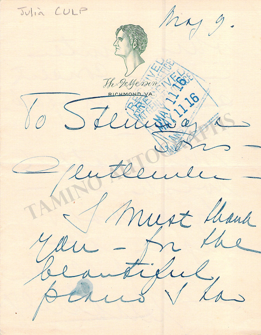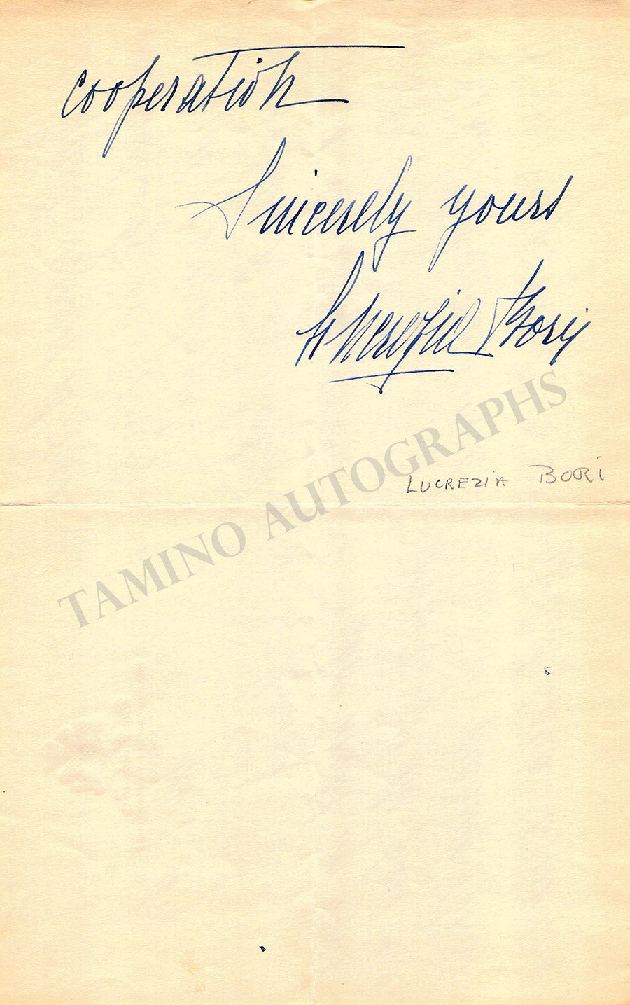 Interesting collection of 54 autograph letters (a few typed letters included) sent to Steinway & Sons Pianos, New York, written and signed by different opera singers (except one sent by the Italian conductor Enrico Bevignani), sent between the 1890s and 1960s (most of them from the period 1890s - 1930s)—different sizes and in very good condition or better.
