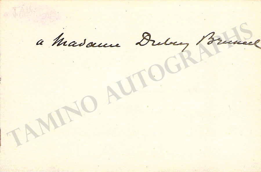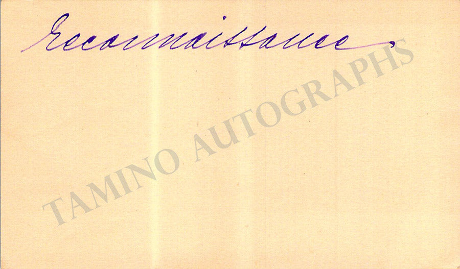 His business card with a short message in French on verso written by him. Size is 3.75 x 2.75 inches, in excellent condition.