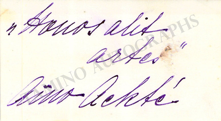 Autograph note on his printed business card. Size is 3.3 x 2.4 inches, in excellent condition.