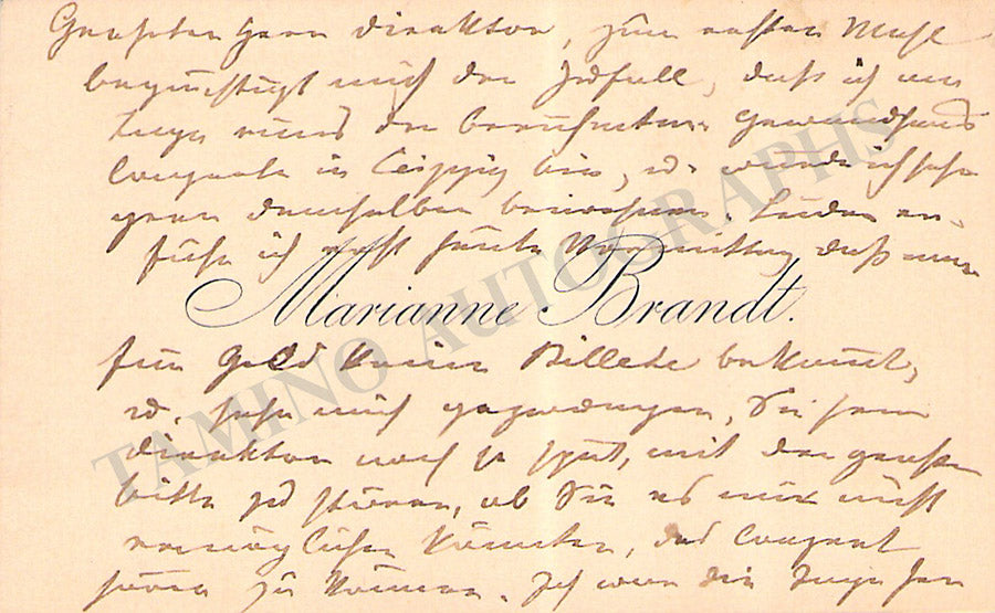 Her business card with a long text in German written by her. Size is 4.75 x 2.75 inches, overall light age-toning, in excellent condition.