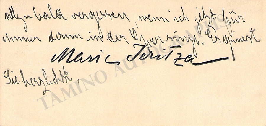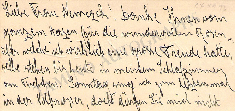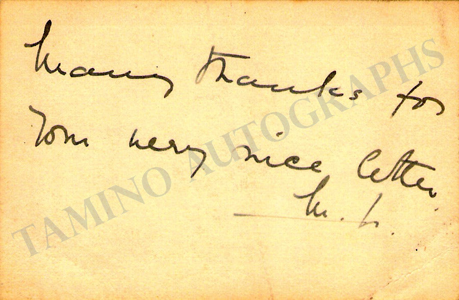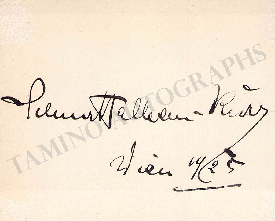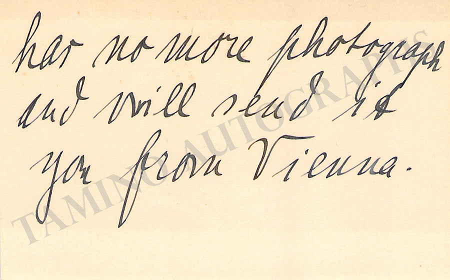 Fine card signed by her in Vienna, 1925. Size is 4.25 x 3.3 inches, in very good condition.
