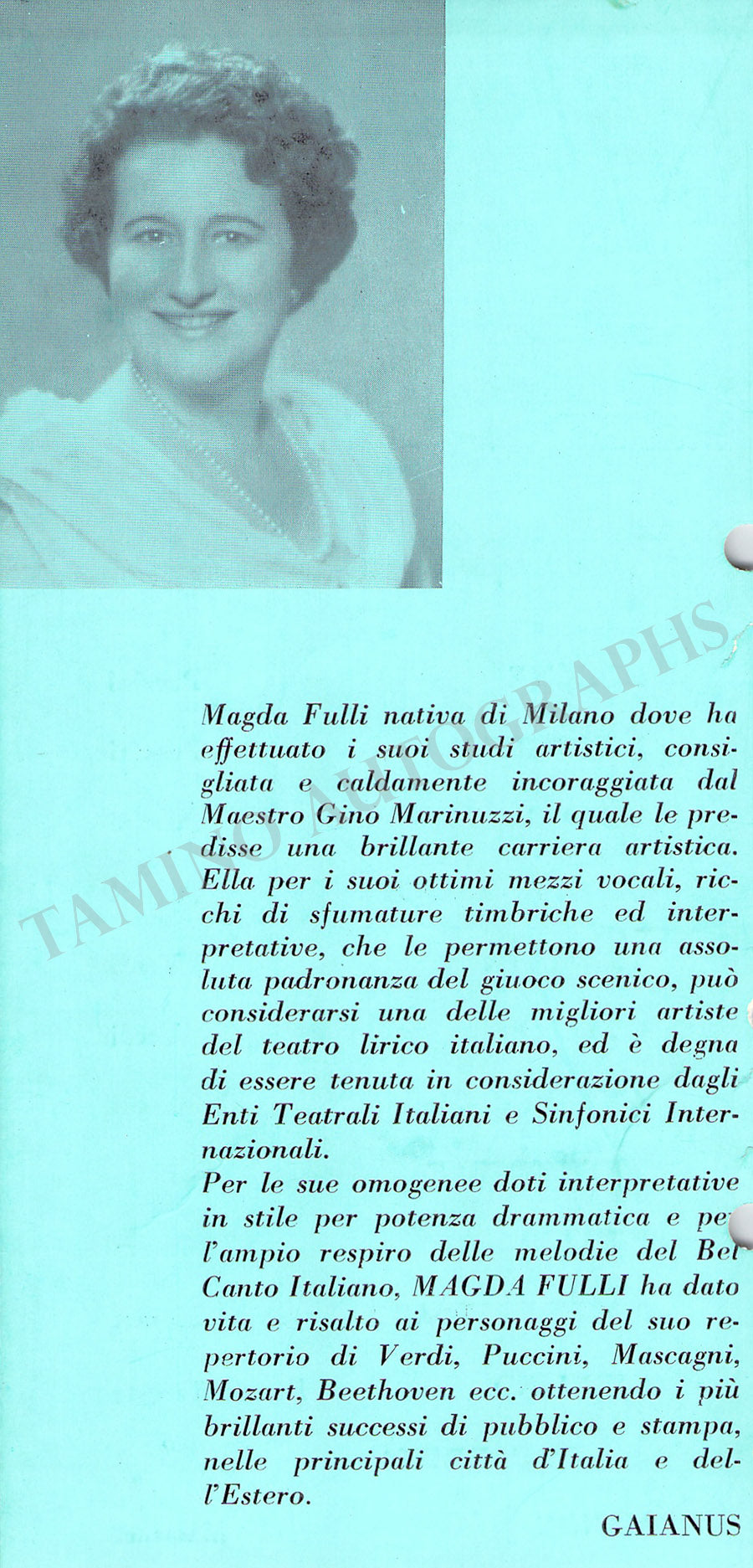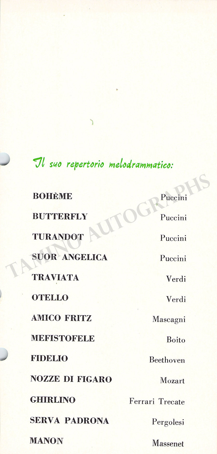 ALSO INCLUDED is a short translation of his message and a short commentary on his Met career.