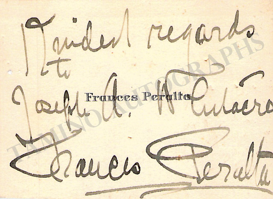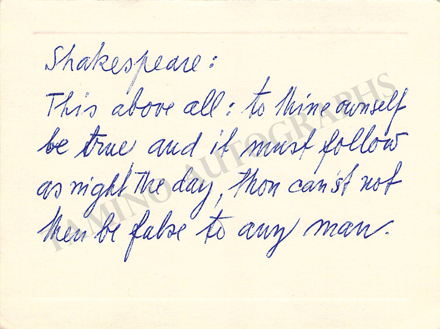 Her business card signed by her with a short sentiment on the back. size is 3.1 x 2.2 inches, mounting traces on verso, in very good condition.