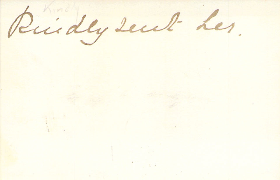 Her original printed card with a probably short abbreviated greeting in low caps over the lower-right corner. Size is 3.7 x 2.2 inches, in excellent condition.