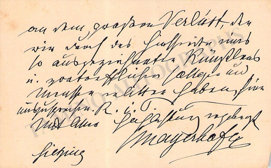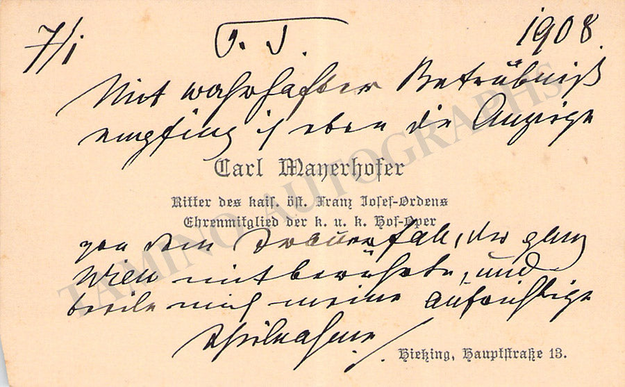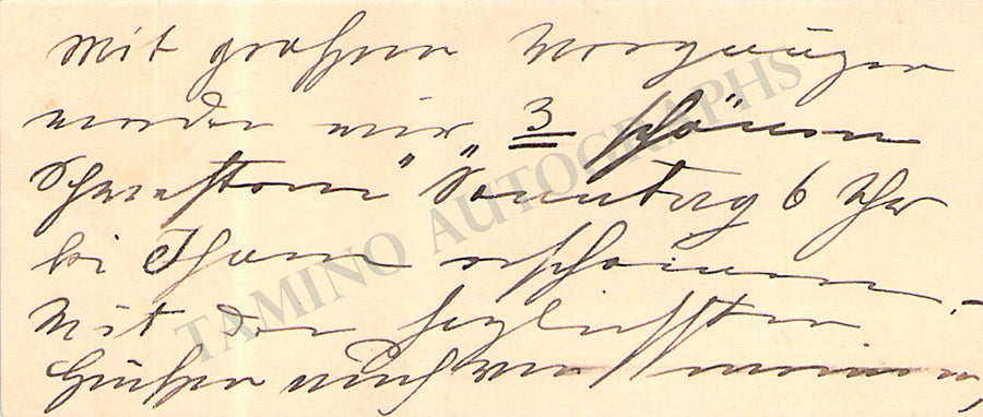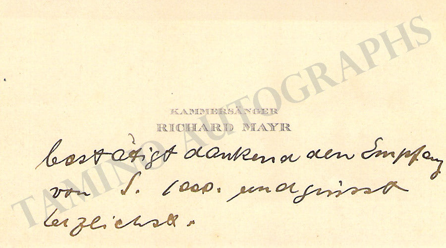 His business card signed by him on verso with a long message in German, dated 1908. Size is 4.1 x 2.5 inches, overall soft age-toning, in excellent condition.
