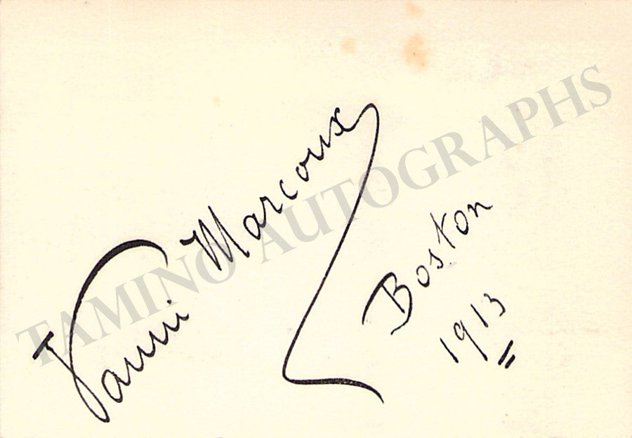 Business card of music fan Gladys Greeley signed by Marcoux on the back dated in Boston, 1913. Size is 2.8 x 2 inches, in excellent condition.