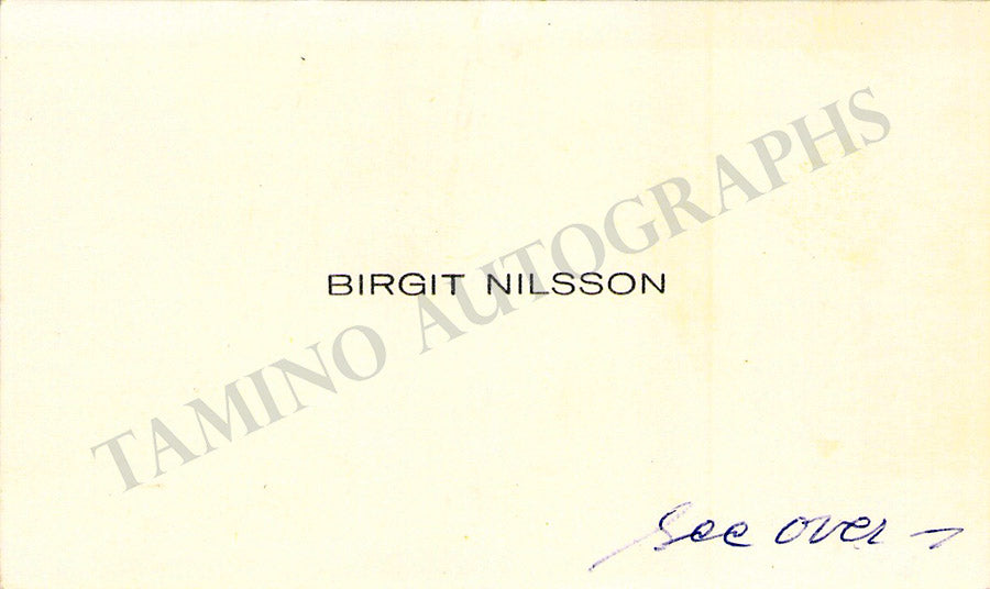 Her business card signed by her as 'Birgit' on verso with a short message in English. Size is 4 x 2.3 inches, some stains, in very good condition.