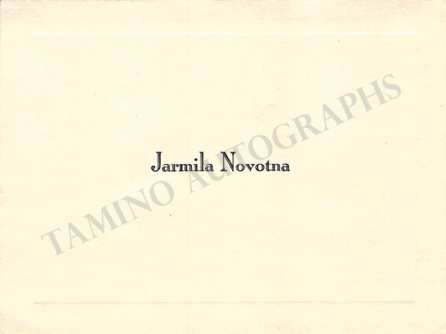 Her original visiting card with a short message in English signed by her on verso. Size is 3.75 x 2.3 inches, rust stains, in overall very good condition