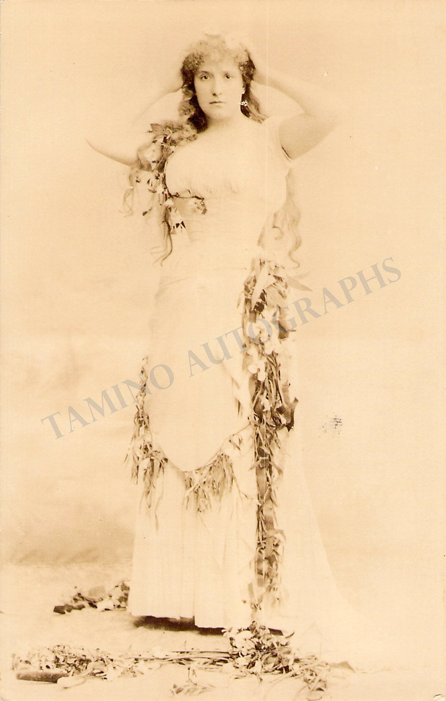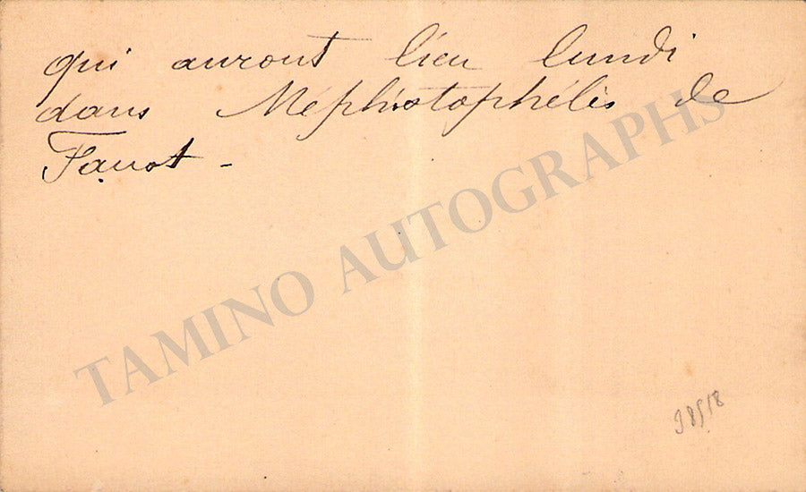 ALSO INCLUDED is a photo postcard of her shown as Ophelie in Thomas' opera 'Hamlet'. Size is 3.5 x 5.5 inches, tape residues on verso, ink-handwriting on verso by a different person.