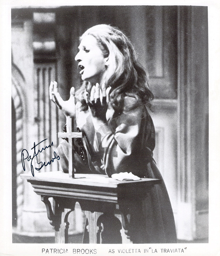 Fine black-and-white photograph signed by her, shown as Violetta Valéry in Verdi's "La Traviata".  Size is 8.1 x 9.4 inches, probably trimmed over the bottom, in excellent condition.
