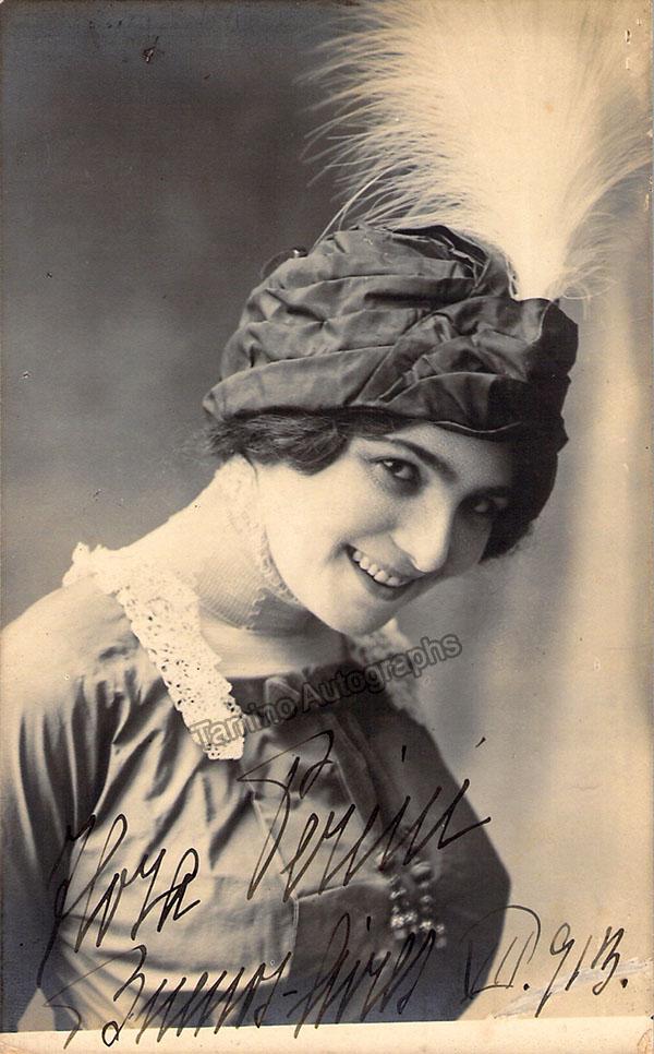 Italian mezzo-soprano (1887-1975), with a very important career on both sides of the Atlantic. Signed photo postcard, shown as herself, young, dated in Buenos Aires in 1913. Size is 3.5 x 5.5 inches, in excellent condition.