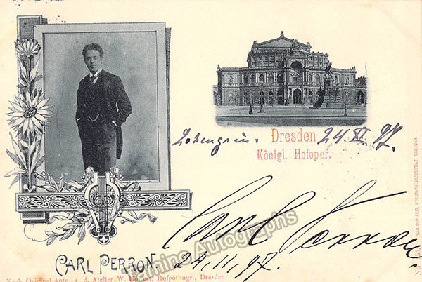 German bass-baritone (1858-1928), signed postcard photograph, containing a half-tone image of himself, dated in 1897. Photo by W. Hoffert studio, Dresden. Size is 3.75 x 5.25 inches, in excellent condition.