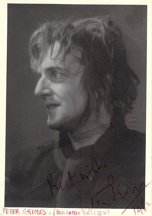 Signed photo postcard, shown as Peter Grimes, with a short sentiment, dated in 1962. Size is 4 x 5.75 inches, in excellent condition
