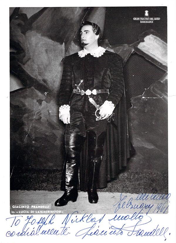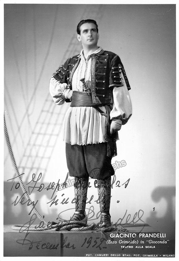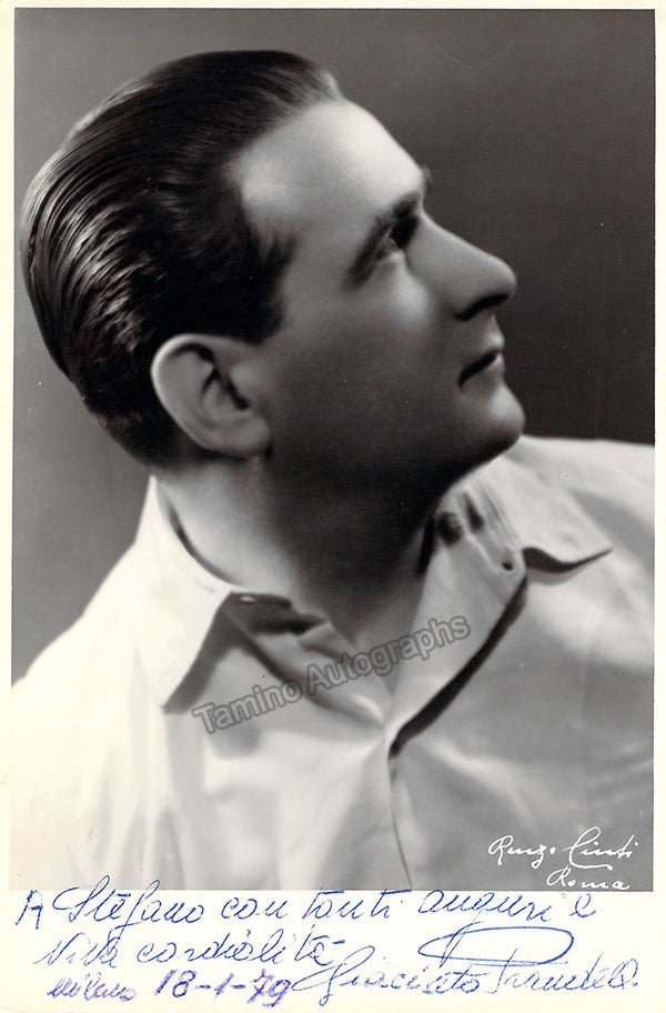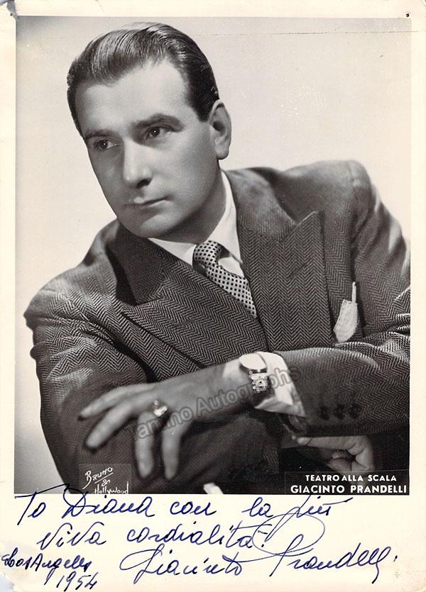 Signed photograph, shown in the title role of Massenet's Werther, inscribed and dated in 1954. Photo by Piccagliani, La Scala, Milan. Size is 5 x 7 inches, in very good condition.