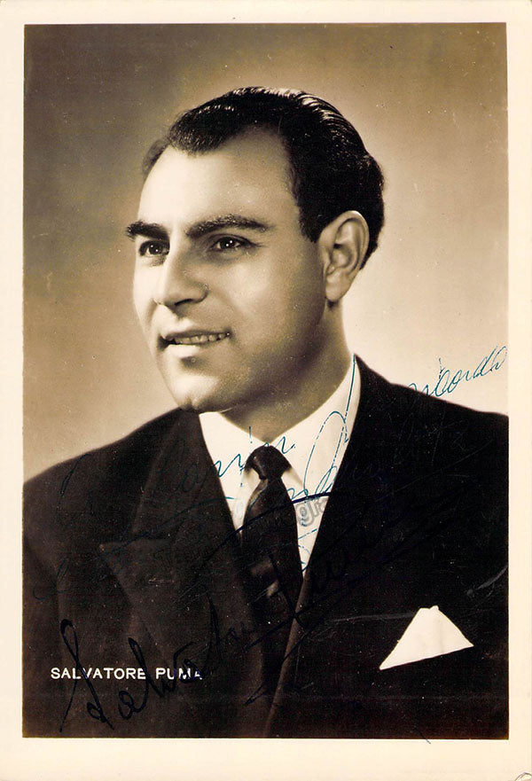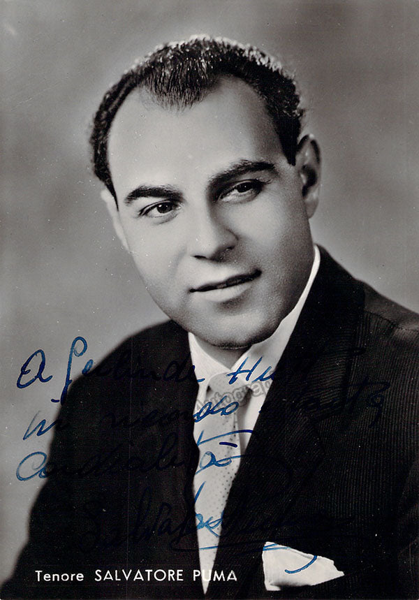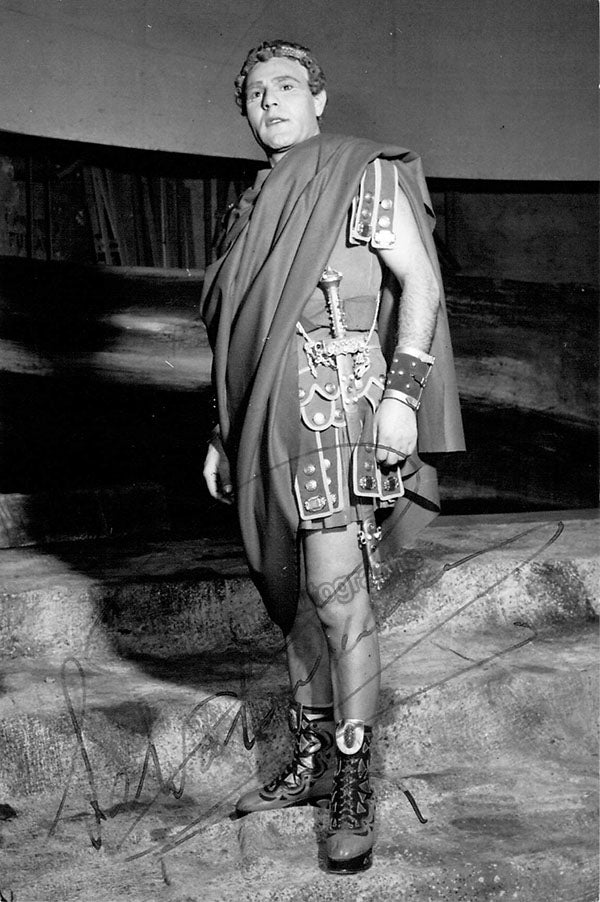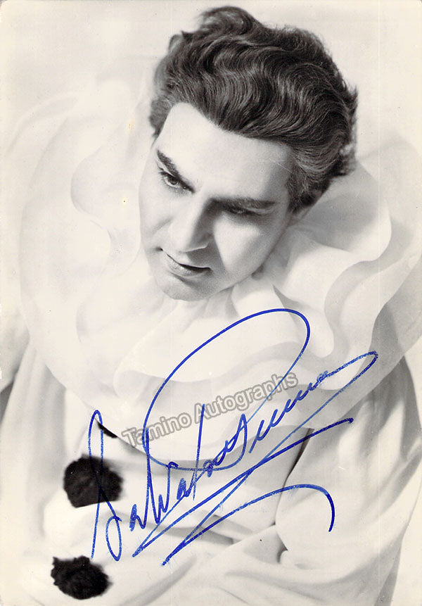 Signed postcard photograph, shown as Pollione in Bellini's Norma. Photo by Nova Foto photographers, Brescia. Size is 4 x 5.75 inches, in excellent condition.