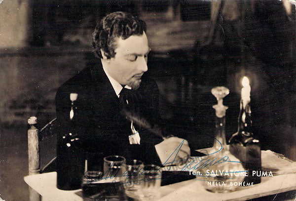 Signed photograph, shown as Rodolfo in Puccini's La Boheme. Size is 4 x 5.75 inches, several creases on right side, otherwise in very good condition.