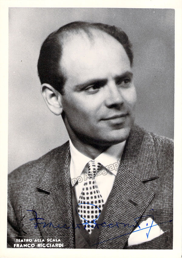 Signed photo, shown in role, in Mussorgsky's Boris Godunov at La Scala, Milan. Signed on verso. Photo by Piccagliani, La Scala, Milan. Size is 4 x 5.75 inches, in excellent condition.