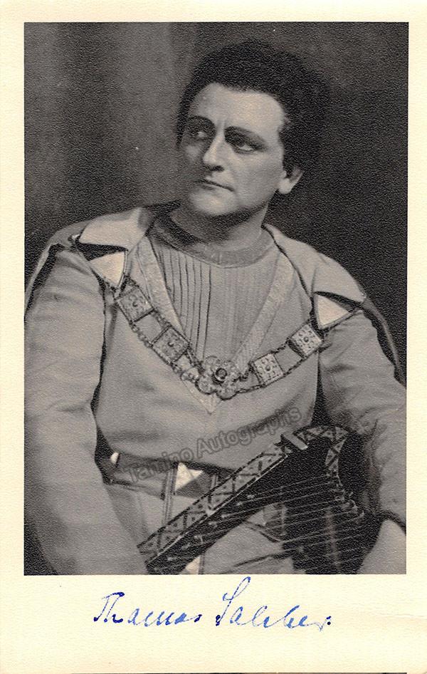 German tenor (1903-1945), signed photo postcard, shown in the title role in Tannhauser. Size is 3.25 x 5.25 inches.