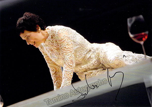 Fine color photograph signed by her shown as Poppea in Monteverdi's masterwork L'Incoronazione di Poppea at the Cologne Opera. Size is 7 x 5 in ches, in excellent condition.