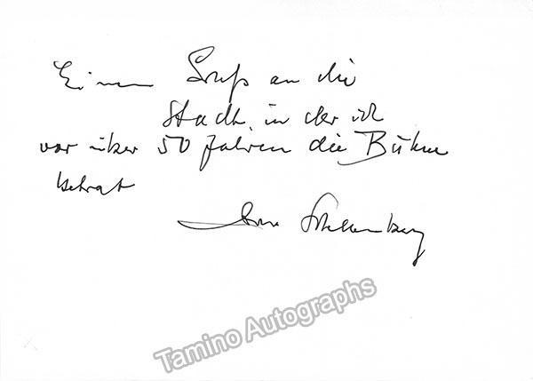 German baritone (1903-1983).  Signed half-tone photo shown as himself, signed in Dresden, dated in 1962. Handwritten on verso with additional signature and a short sentiment. Size 4 x 5.75 inches, in excellent condition.