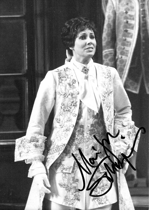 American mezzo-soprano (b. 1955), signed photograph, shown in role. Stamped on verso by photographer Anne Birchbach, Vienna. Size is 4 x 5.75 inches, in excellent condition.