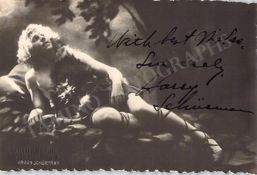 Austrian tenor (1885-1954), signed postcard photograph, shown in the title role of Wagner's Siegfried. Blind stamped on front by photographer J. Pfohl. Size is 3.5 x 5.5 inches, in excellent condition.