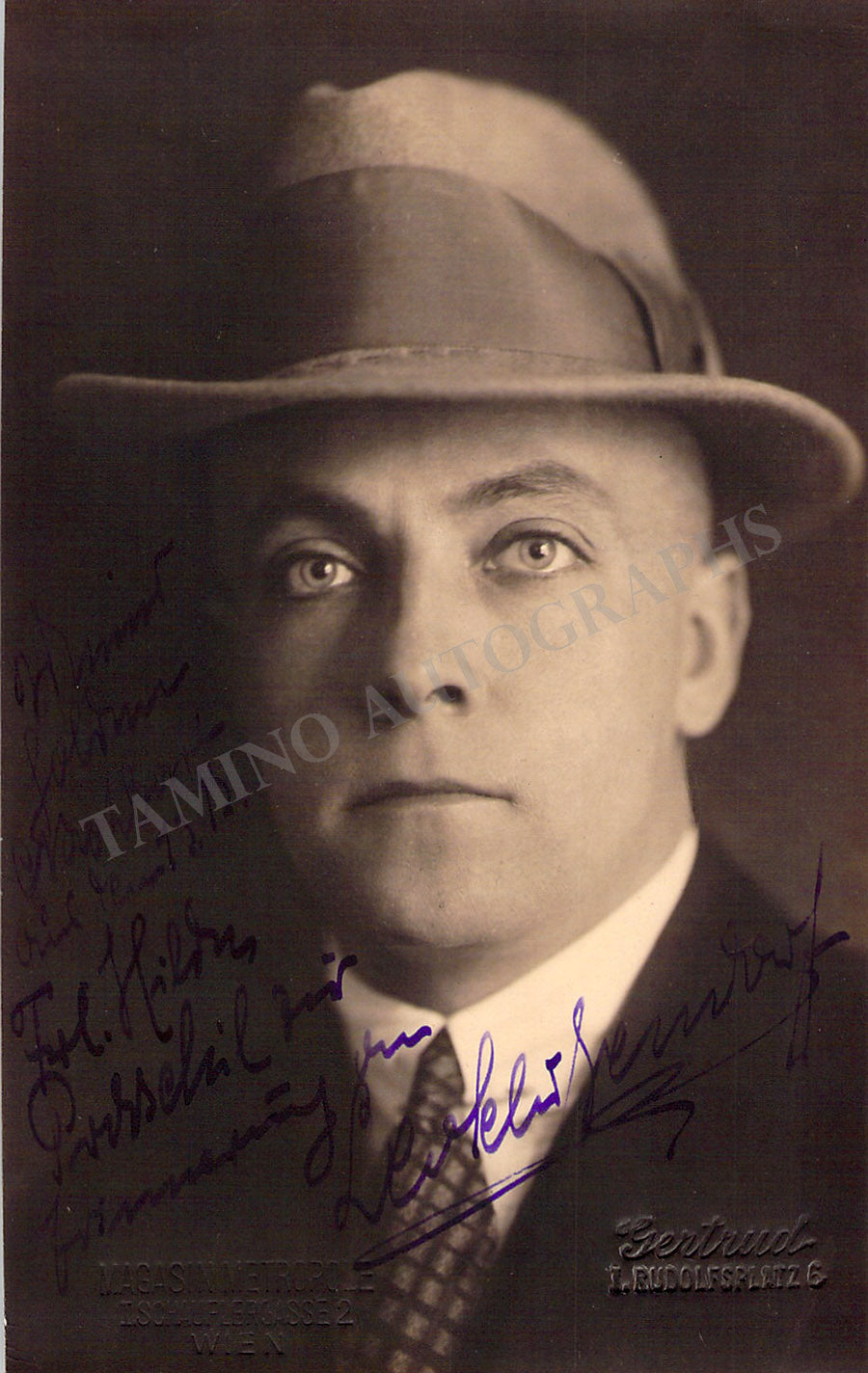 German baritone (1886-1931), signed postcard photograph, shown as himself, inscribed. Blind stamped on front by both photographer Gertrud and by Magasin Metropole photo studio, Vienna. Size is 3.25 x 5.25 inches, in excellent condition.