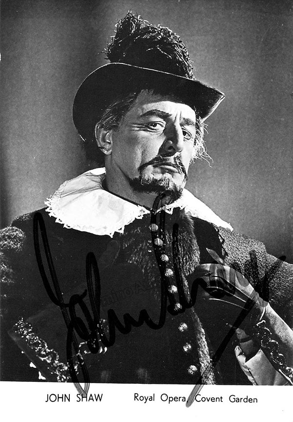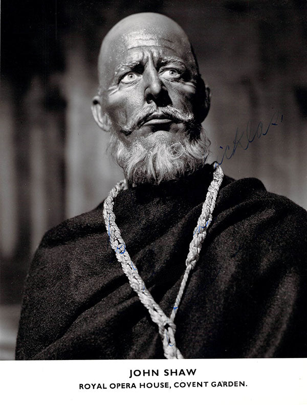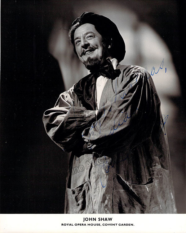 Signed promotional photograph, shown in role (possibly as Verdi's Falstaff) at the Royal Opera, Convent Garden, London. Size is 3.5 x 5 inches, in excellent condition.