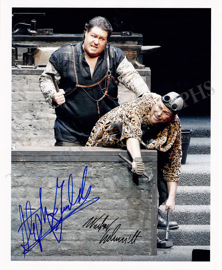 Fine color photograph signed by him and a fellow singer, shown in performance in Wagner's opera Siegfried. Size is 7.9 x 9.7 inches, in excellent condition.