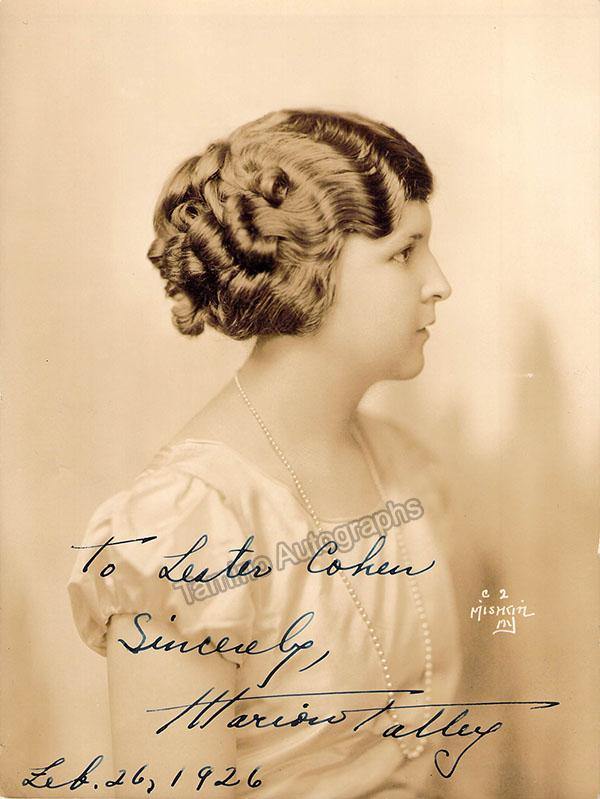 Signed photograph shown as herself, inscribed and dated in 1926.  Printed signature on front by photographer Mishkin, New York. Size is 6 x 8 inches, in excellent condition.
