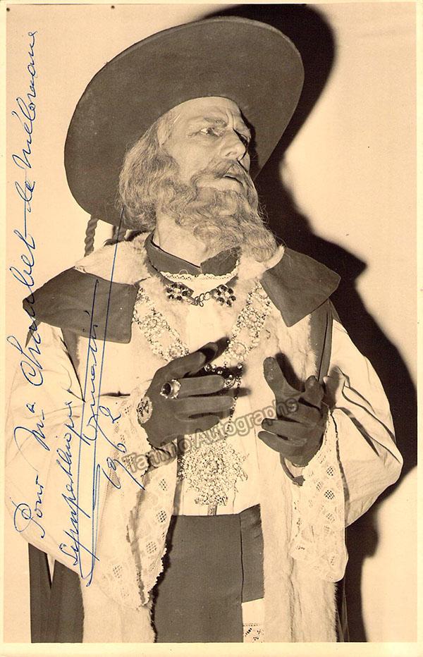 French bass (1898-1968), signed photo, shown in role, inscribed and dated in 1962. Stamped on verso by Gubbins photo studio, Montpellier. Size is 4.5 x 7 inches, in excellent condition.
