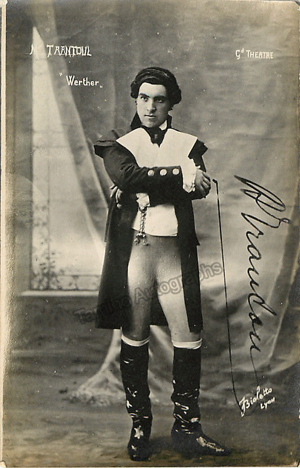 French tenor (1887-1966), signed photo postcard, shown in the title role in Werther. Size is 3.5 x 5.5 inches, in excellent condition.