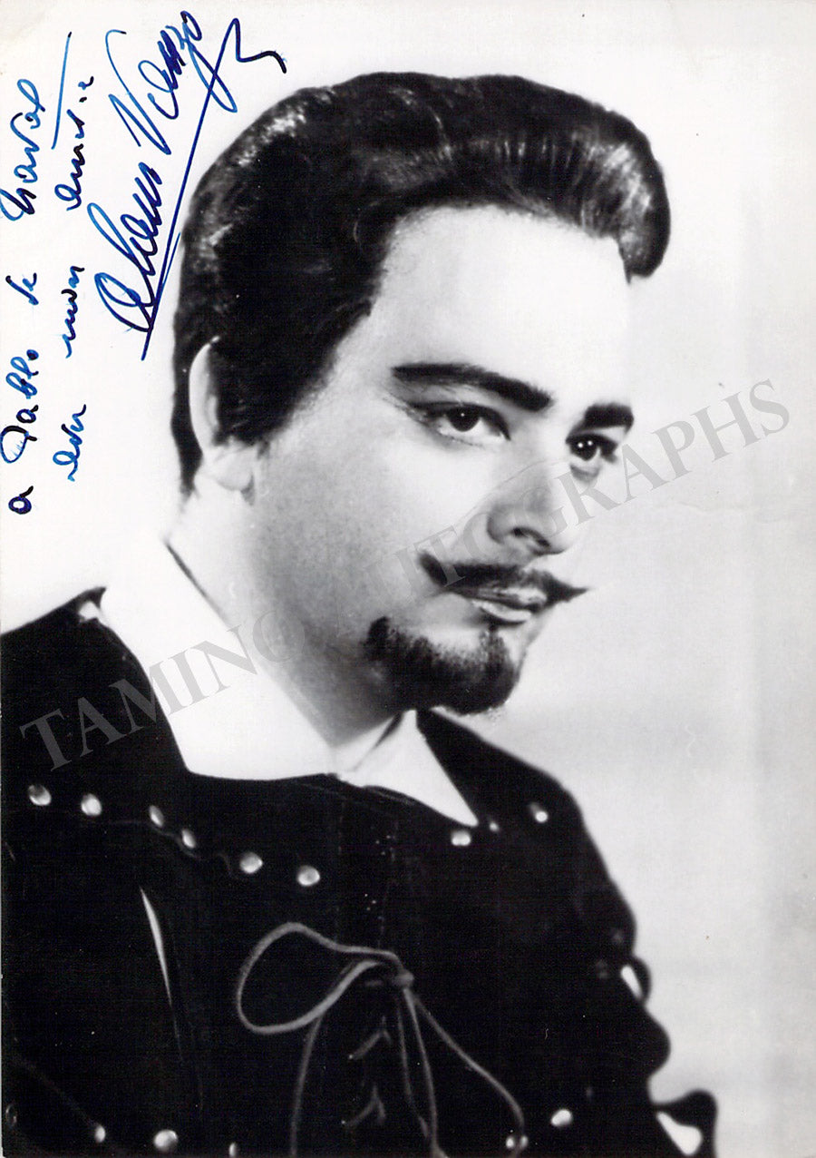 Celebrated French tenor (1928-2002), signed photograph, shown as Edgardo in Donizetti's Lucia di Lammermoor, inscribed. Size is 3.5 x 5 inches, very small crease on bottom left, otherwise in excellent condition.