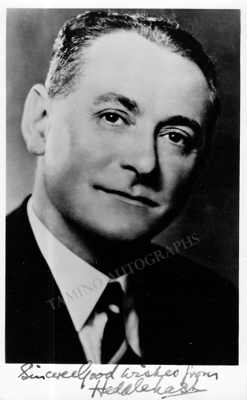 Black-and-white photograph signed by him with a short sentiment; ink-stamped on verso by The Photo Repro Company. Size is 3.3 x 5.3 inches, in excellent condition.