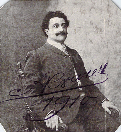 French tenor (?-1916), signed photograph, shown as Don Jose in Bizet's Carmen, signed on verso, dated in 1987. Size is 4 x 5.75 inches, in very good condition.