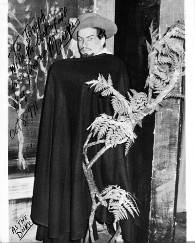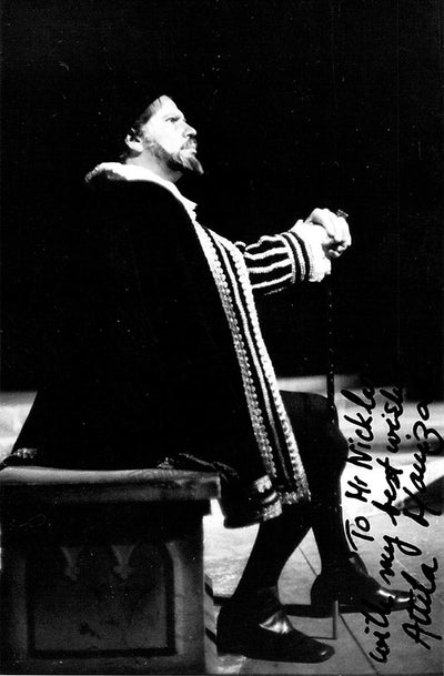 Belgian bass-baritone (b. 1943), signed photograph, shown as Golaud in Debussy's Pelleas et Melisande, signed on front with additional text on verso. Size is 4.5 x 5.75 inches, in excellent condition.