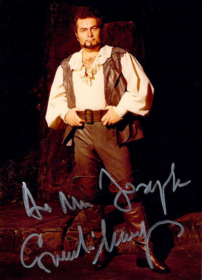 Italian baritone (b. 1952), signed photograph, shown as himself. Inscribed and dated in 2002. Size is 5 x 7 inches, in excellent condition.