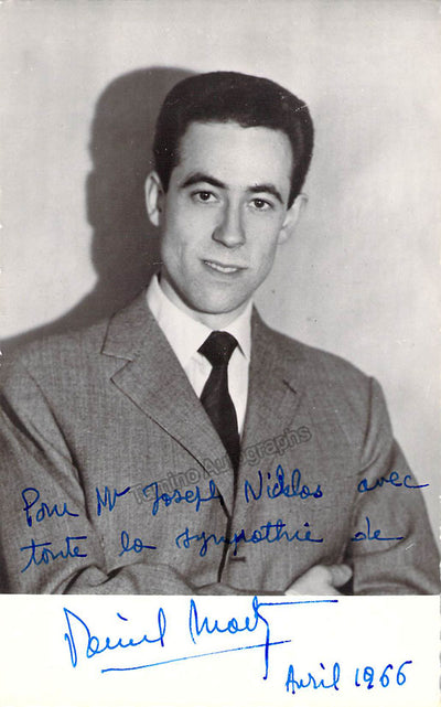 French baritone (1925-2009), signed publicity photograph, shown as himself. Inscribed. Photo by Studio Hollywood. Size is 3.5 x 5.5 inches, in excellent condition.
