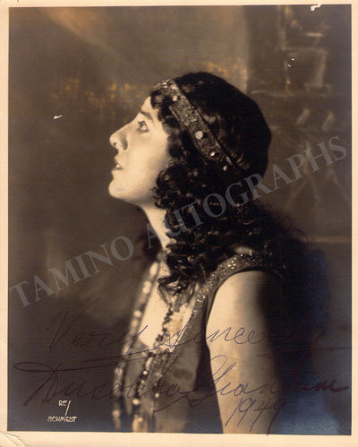 Polish-Estonian coloratura soprano (1909(?) –1980), who also appeared in Hollywood and Mexican films. Signed postcard photograph, shown as herself. Size is 4 x 5.75 inches, in very good condition.