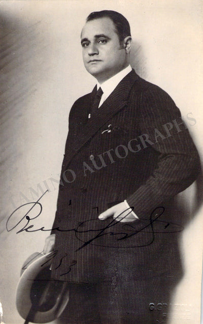 Italian baritone (?-1993), signed photograph, shown as himself.  Stamped on verso by Ecofotografico photo studio. Size is 4 x 5.75 inches, slight paper loss on edges, otherwise in very good condition.