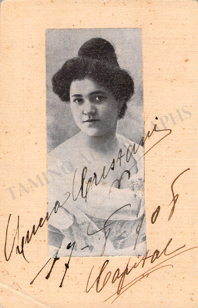 • American contralto (1871-1947) who had an active international career in concert halls and opera houses from 1895 until her retirement in 1932. Original autograph letters, autograph notes, music quotes, signed scores, signature cuts, clips, cards, and album pages signed by the famous singer, in different sizes, lengths, and conditions (for more details please check individual descriptions). Scroll down to see all the autographs and click on each to enlarge or see more photos if available. SOLD INDIVIDUALLY.