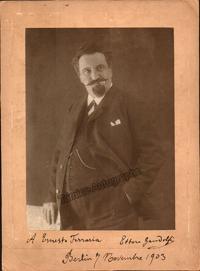 Italian mezzo-soprano (1878-1935). Original cabinet-style photograph of the singer (probably in role) by photographer Antoni Esplugas (Barcelona). Size is 4.25 x 6.5 inches, minor rust stains on the front, verso in excellent condition.